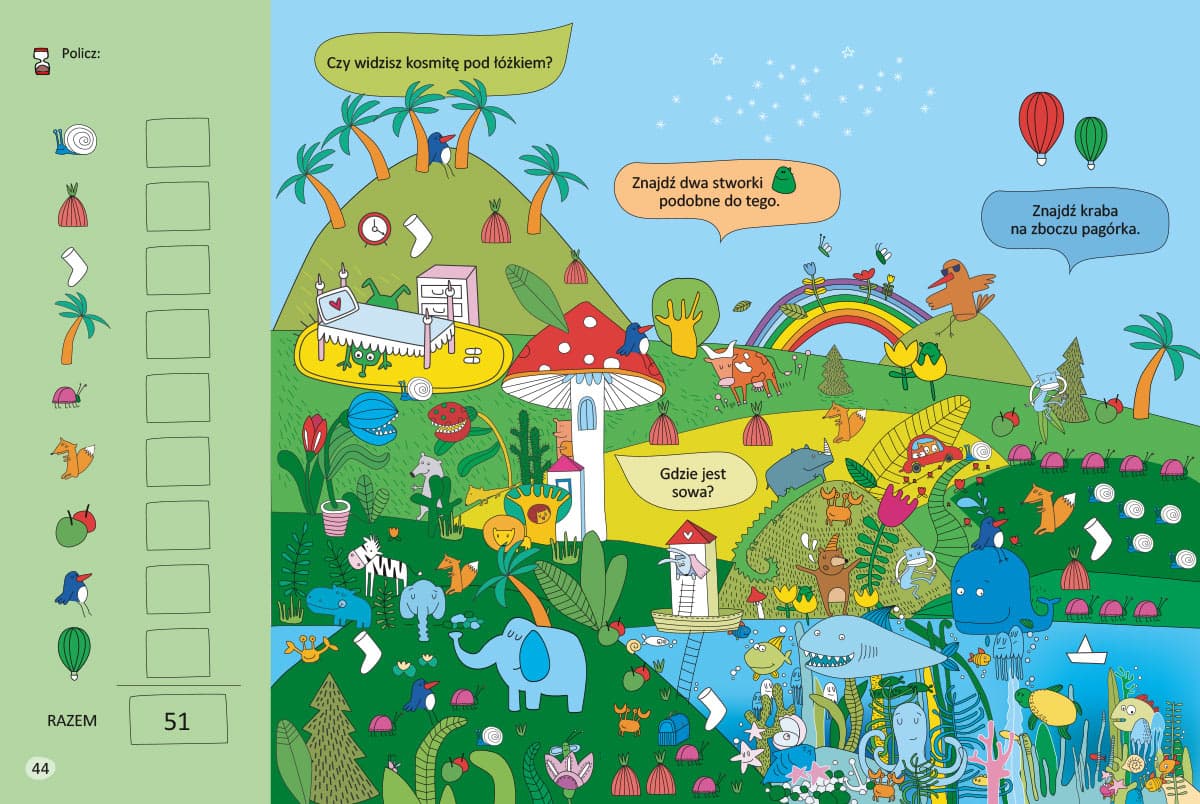 Od dna morskiego po daleki kosmos – na zwariowanych ilustracjach odkrywaj i licz przedmioty! Rozruszaj mózgownicę! Ćwiczenia dla dzieci w wieku 6–10 lat. Rozwijają sprawność umysłową, umiejętność analizy, kojarzenia i łączenia obiektów w grupy, a przy tym zapewniają świetną rozrywkę na wycieczce, w deszczowe dni, w restauracji, na rodzinnych wakacjach, po szkole lub w dowolnym momencie! Angels Navarro zajmuje się terapią poprzez zabawę i specjalizuje się w edukacji psychomotorycznej. Jest autorką ponad 100 książek dla dzieci, wyprodukowała także programy telewizyjne, zestawy gier do nauki i gry online dla dzieci.