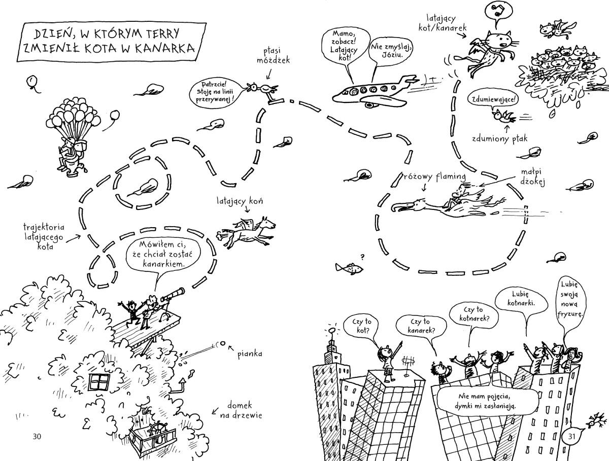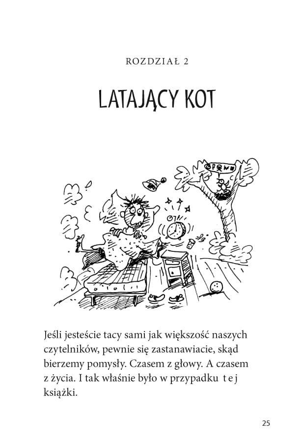 Andy i Terry mieszkają w trzynastopiętrowym domku na drzewie. A ten domek jest najfajniejszy na świecie! Znajdziecie tu kręgielnię, oczko wodne pełne rekinów, tajne podziemne laboratorium oraz inteligentny piankomat, który podąża za człowiekiem krok w krok. Naprawdę, życie byłoby piękne, gdyby nie to, że dwaj kumple mają jeden dzień na napisanie nowej książki dla swojego wydawcy, Nochalskiej Księgarni… W dodatku ciągle coś im przeszkadza: latające koty, gigagoryle, milutkie syrenki, potwory morskie udające milutkie syrenki… Domek na drzewie po prostu pęka w szwach od niezapowiedzianych gości!
