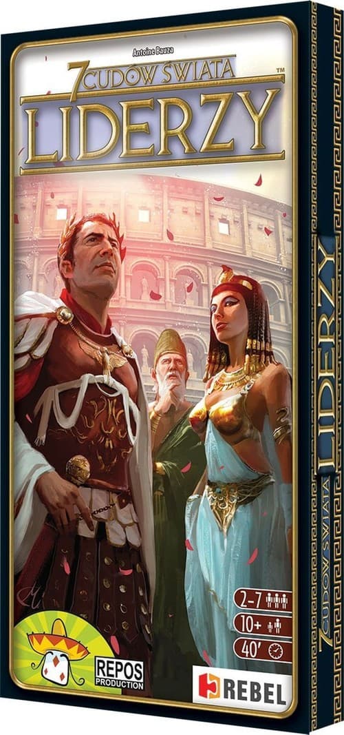 Liderzy to dodatek składający się z 40 kart, zawierających 4 nowe gildie oraz 36 nowych, białych kart "Liderów". Na początku gry, każdy z graczy bierze do ręki 4 liderów i może zagrać po jednym na początku każdej z trzech epok. W przeciwieństwie do pozostałych kart, zagranie lidera wymaga wydania pieniędzy (nie surowców). Dodatek wprowadza również nowy Cud Świata - starożytne miasto Rzym - oraz zawiera kilka pomocnych żetonów złota o nominale 6. Zawartość pudełka: 4 karty Gildii 36 kart Liderów 1 plansza Cudu Świata żetony złota notes punktacji instrukcja. Liczba graczy: 2 - 7 osób Wiek: od 10 lat
