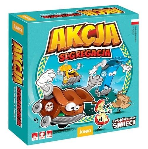 Jedną z najpopularniejszych form ochrony środowiska jest segregacja śmieci, która w kolejnym etapie pozwala na przetwarzanie ich w procesie recyklingu. Dzięki grze „Akcja Segregacja” dzieci poznają zasady segregowania śmieci, w którym pojemniku trzeba umieścić poszczególne odpady. Co zaliczamy do odpadów szklanych, papierowych, plastikowych, zmieszanych czy też bio? Które odpady powinny trafić do PSZOK-u i co to są „gabaryty”? W instrukcji dzieci znajdą pięć różnych propozycji rozgrywek. Gra dla 2-4 graczy.Sugerowany wiek: 4-8 lat.