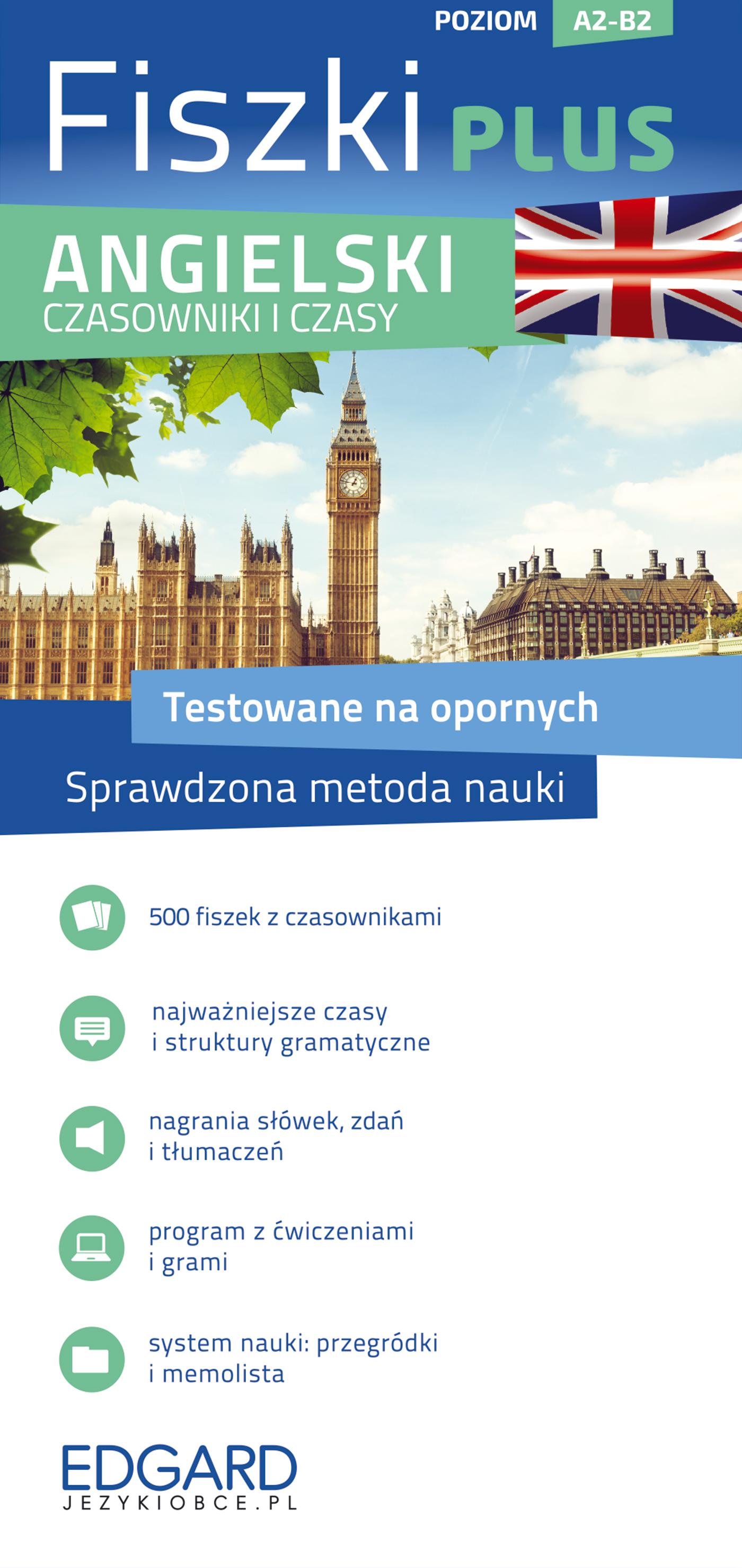 O książce Angielski. Czasowniki i czasy. Fiszki PLUS. Poziom A2-B2