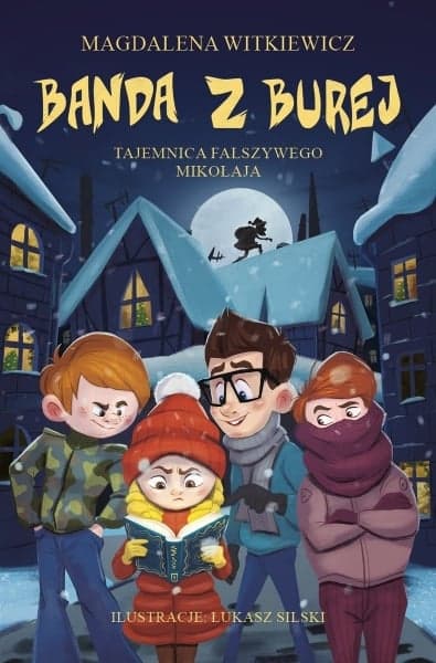 Nowi bohaterowie! Nowe tajemnice! Ta sama banda z Burej! Gdy pierwsze płatki śniegu przykryją miasteczko, a zapach pierników rozniesie się po okolicy, banda z Burej będzie musiała rozwikłać nową zagadkę! Zbliża się Boże Narodzenie, a rezolutna grupa dzieciaków znów ma ręce pełne roboty. Ktoś pozbywa się starych książek, dom babci Jasi grozi zawaleniem, a w okolicy pojawia się aż dziesięciu Świętych Mikołajów! Banda z Burej szuka, dopytuje i przepytuje, by odkryć tajemnicę skrytą między stronami porzuconych encyklopedii i tomików wierszy. Gdzie skrywa się prawda? I czy źli ludzie mogą być tak naprawdę tymi dobrymi? Banda z Burej. Tajemnica fałszywego Mikołaja to zabawna i pouczająca historia o tym, że jeśli bardzo mocno się postaramy, to wszystkie marzenia się spełniają!