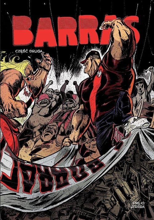Blondas, Indianin, Gruby spotykają się na wojennej ścieżce! Druga część Barras, znów kawał mocnej przygody argentyńskiego środowiska kibiców, zaczyna splatać ze sobą luźno naszkicowane wątki z pierwszego zeszytu. Wiemy, już kto stoi za brakiem broni w barrios. Wiemy też, że już wkrótce dojdzie do konfrontacji... ale jaki cel przyświeca sposkowcom? Barras Emilia Utrery wreszcie przybywają do Polski. Legendarni argentyńscy kibice siejący postrach w okolicach stadionów i na przedmieściach Buenos Aires nie będą się patyczkować w walce o wpływy. Pierwszy z sześciu zeszytów serii zaczyna się od wielkiej zadymy stadionowej, w której ginie kibic. Tak naprawdę wcale jednak nie o niego chodziło, ot, pechowiec, zbłądził w niewłaściwe miejsce o niewłaściwej porze... Wartka akcja, brutalny język ulicy, świetne rysunki, których czarno-biała kreska pulsuje mocą i energią. Autor lubi bawić się konwencją i wbić muskuły superbohaterów w dresiki ultrasów, łatwość tworzenia karykaturalnych rysunków ma zadziwiającą - jak na grafficiarza i tatuażystę przystało. Barras to coś więcej niż opowieść o ultrasach z Argentyny znanych z tego, że robią najlepszą oprawę na świecie, handlują narkotykami i bronią oraz tatuują sobie Malwiny (znane nam bliżej jako Falklandy) jako część państwa argentyńskiego. Utrera opowiada nam historię przestępczego światka jednego z najbardziej imponujących miast globu - Buenos Aires. A że w okolicznościach stadionów - to na polskim rynku nowość, która tylko działa na korzyść komiksu. Emilio Utrera (1983) jest samoukiem, który od dziecka wiedział, że chce malować, rysować, kreślić znaki. W 2012 rozpoczął rysowanie serii komiksów Barras, która w następnym roku, w Argentynie przyniosła mu uznanie w środowisku rysowników.
