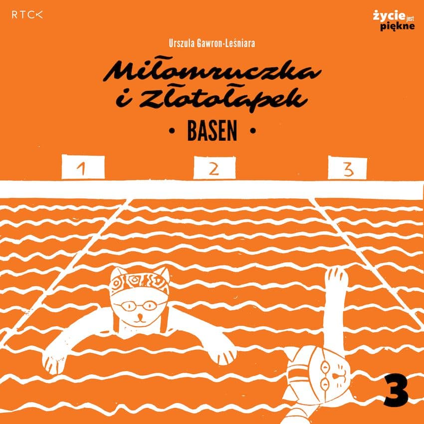 Miłomruczka zaprasza Złotołapka na basen. Choć woda jest odrobinę rześka, pływanie daje przyjaciołom sporo radości, szczególnie gdy ścigają się stylem… kocim.