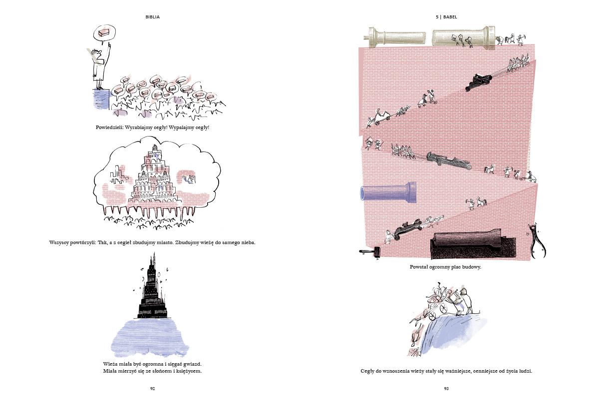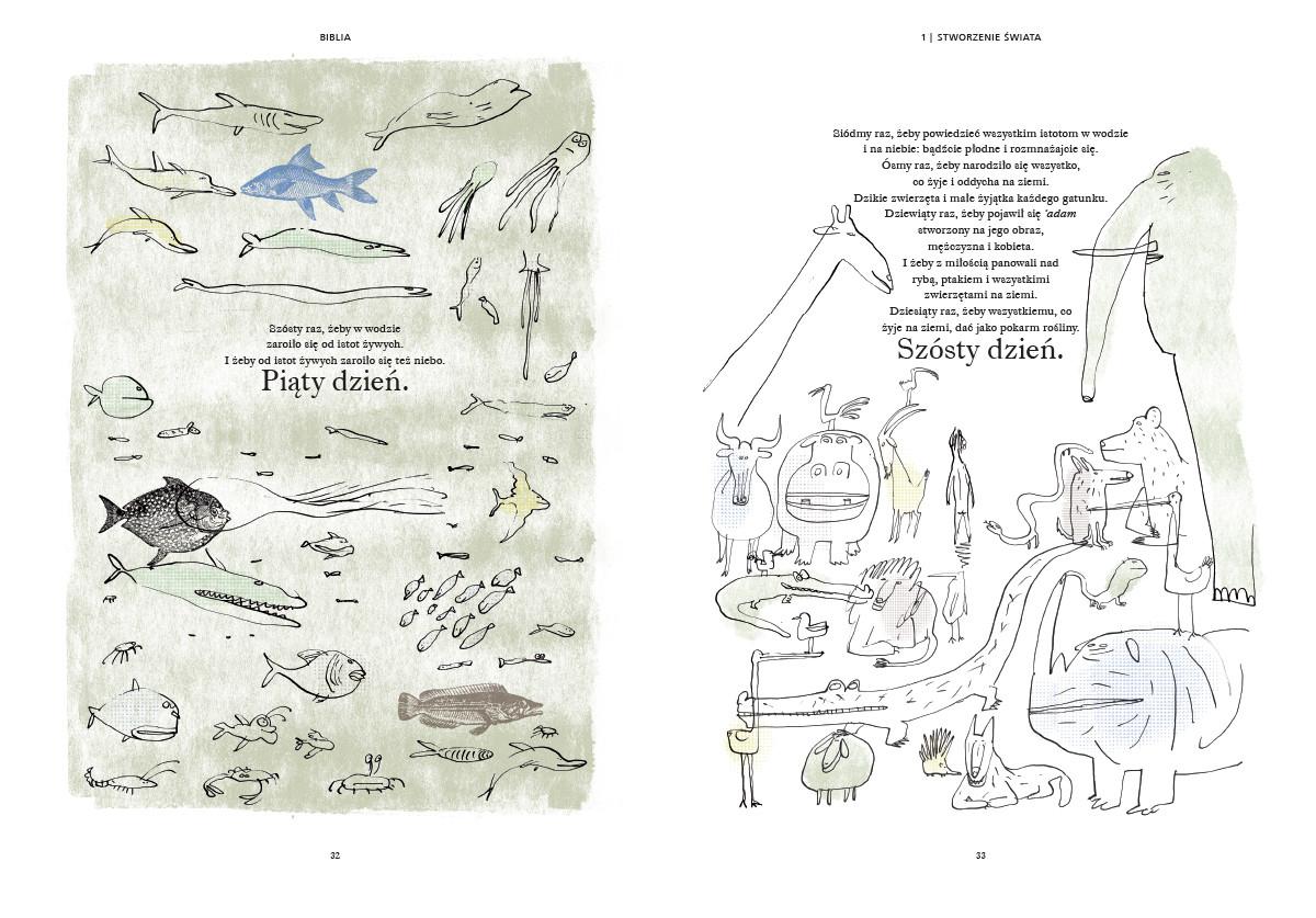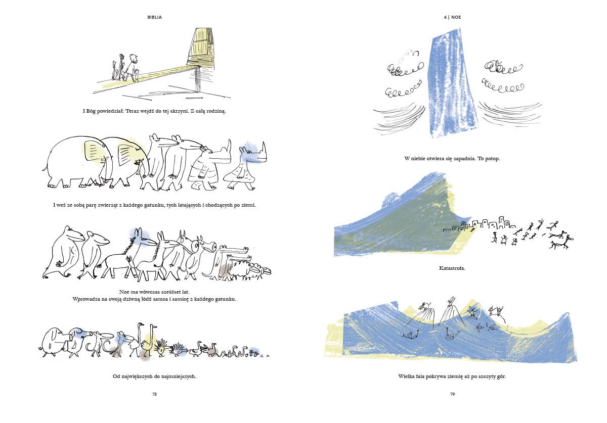 Wielkie opowieści Starego Testamentu w nowatorskiej, literacko-graficznej formie, która przemówi do każdego: młodszych i starszych, laików i znawców Biblii. W tej imponującej księdze słowa i obrazy są równie ważne: niemal każdemu zdaniu towarzyszy osobna ilustracja. Pisarz i rysownik wspólnie podjęli się ambitnego wyzwania: opowiedzieć pradawne biblijne historie w taki sposób, byśmy dziś, tu i teraz, mogli odnaleźć w nich samych siebie i świat, w którym żyjemy. Znajdziecie tu nieśmiertelne, fundamentalne opowieści: stworzenie świata i wygnanie z raju, arkę Noego i wieżę Babel, dzieje Mojżesza i niedolę Hioba. W sugestywnym, świeżym ujęciu Fredérica Boyera i Serge’a Blocha stają się one próbą odpowiedzi na najważniejsze pytania, jakie stawia sobie współczesny człowiek. Mówią o wolności i odpowiedzialności, miłości i sprawiedliwości, wojnie i władzy, wygnaniu i migracjach.