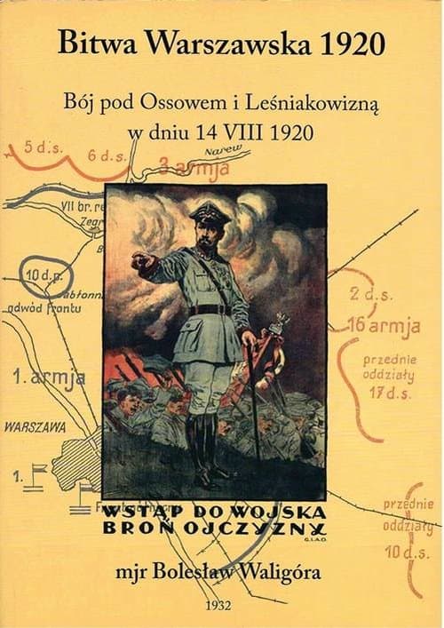 Struktura publikacji: Rozdział z książki Bolesława Waligóry „Bój pod Ossowem i Leśniakowizną”, wydanej w 1932 r., wydanej przez Wojskowe Biuro Historyczne pt. „Bój na przedmościu Warszawy w sierpniu 1920 r.” Ordre de Bataille stron walczących Stany liczebne Frontu Północno-Wschodniego Szkice od 1 do 12 - Położenie Frontu Północno-Wschodniego w dniach od 27 lipca do 7 sierpnia 1920 r. Mapa okolic, format 980/432 mm z 1931 r. w skali 1:25 000 szkice sytuacyjne Ossów, niewielka wieś w powiecie wołomińskim. Miejscowość położona najbliżej centrum Warszawy, w której znalazły się wojska bolszewickie w sierpniu 1920 roku – napisał Jarosław Stryjek, regionalista. Stąd, do Placu Zamkowego, w linii prostej pozostało im niespełna 15 kilometrów”. Uświadamiając sobie tę bliskość, rozumiemy jak ważna była obronna faza walk Bitwy Warszawskiej, stoczonych głównie w rejonie Ossowa i Radzymina, pod ogólnym dowództwem gen. Józefa Hallera i przy znacznym udziale gen. Lucjana Żeligowskiego. Pod Ossowem zatrzymały atak wroga 221 i 236 Pułki Piechoty Wojska Polskiego, formacje ochotnicze, złożone z przedstawicieli wszystkich warstw społecznych i zawodowych. Szczególną chwałą okrył się w bojach pod Ossowem 236 P.P., zorganizowany w dzielnicy Praga z młodzieży warszawskiej przez por. Mieczysława Słowikowskiego. Kapelan pułku, ksiądz Ignacy Skorupka poległ w pierwszych minutach polskiego kontrataku, a Jego śmierć stała się ogólnopolskim symbolem obrony stolicy
