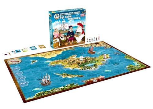 Edukacyjna gra planszowa „Byli sobie podróżnicy” to emocjonująca zabawa, w której możesz sprawdzić swoją wiedzę na temat historii rozwoju czlowieka. Celem gry jest odkrycie miejsca, w którym został ukryty mityczny skarb. By tego dokonać wybierasz jeden z czterech statków i ruszasz na morską wyprawę (do wyboru statki w formie puzzli 3D). Pierwsze zadanie, jakie musisz wykonac to odnalezienie i zrekonstruowanie zagubionej mapy. Jej części, zostały ukryte w butelkach, które pływają swobodnie w morskich przestrzeniach. Rekonstrukcja mapy daje Ci możliwość odnalezienia miejsc, w których ukryto papirusy z kluczami do skarbca. Po odnalezieniu klucza sprawdzasz do którego z czterech skarbców pasuje. Cały czas miej się na baczności. Jeżeli jesteś pewny swego, nie bój się pojedynków. Zaskakuj innych wiedzą i pomysłowością. 2-4 graczy Wiek: 8-108
