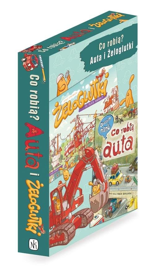Dwie fantastyczne książki dla najmłodszych: „Opowiem ci, mamo, co robią auta” Artura Nowickiego i Marcina Brykczyńskiego oraz „Żeloglutki na placu budowy” Janusza Wyrzykowskiego. Zestaw w eleganckim pudełku, idealny na prezent! „Opowiem ci, mamo, co robią auta”: Jakie samochody pracują w mieście, a jakie na wsi? Co kryje w sobie wnętrze samochodu? Jakie pojazdy ścigają się po torze wyścigowym, a jakie pracują na placu budowy? Dlaczego w warsztacie samochodowym jest taki bałagan? Co robią samochody zimą, a co w lecie? Gdzie można spotkać najnowsze i najpiękniejsze modele samochodów? Odpowiedzi na te i inne pytania dotyczące bogatego świata pojazdów dużych i małych znalazły się w tej niezwykłej książce narysowanej z humorem przez Artura Nowickiego. „Opowiem ci, mamo, co robią auta” to znakomity prezent dla dzieci w wieku od 2 do 6 lat. Książka ćwiczy spostrzegawczość, umiejętność opowiadania, ilustracje wzbogacają rymowane zagadki Marcina Brykczyńskiego, a sztywne kartki pozwolą jej przetrwać wielokrotne przeglądanie. "Żeloglutki na placu budowy" "Żeloglutki na placu budowy" to niezwykła książka – można ją oglądać strona po stronie, a po wyrwaniu kartek stworzyć układankę w rozmiarze XXL. Witajcie na placu budowy, gdzie powstaje nasze miasteczko. Jeżdżą tu koparki, ciężarówki, spychacze, dźwigi i podnośniki. Mamy też narzędzia: betoniarki, piły, młotki i wiertarki. My, Żeloglutki, tak naprawdę wolimy odpoczynek od ciężkiej pracy, dlatego zawsze znajdziemy czas na piknik, drzemkę, doskonalenie pływania, podjadanie owoców z drzew, a nawet puszczanie latawców i samolotów z papieru. Szczerze mówiąc, robota idzie nam niespiesznie… Ale lubimy się bawić, więc znajdziecie tu mnóstwo zagadek!