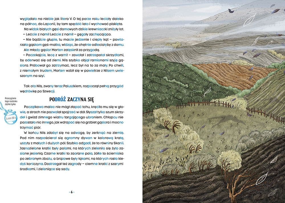 Przedstawiamy adaptację znanej od pokoleń powieści Cudowna podróż Selmy Lagerlöf, wchodzącą w skład nowej serii wydawniczej - Czytanki metodą sylabową. Seria przeznaczona jest dla dzieci doskonalących umiejętność czytania i oparta o metodę sylabową, uważaną za najskuteczniejszą w nauce czytania. Jest podstawą jest posługiwanie się sylabami, zaznaczonymi na przemian dwoma kolorami, i tak też przygotowano tę publikację. Wybór powieści w serii jest nieprzypadkowy - historia Nilsa zainteresuje każde dziecko. Ten łobuz i leń zostaje zamieniony za karę w elfa i rozpoczyna podróż ze stadem dzikich gęsi, podczas której spotykają go liczne dramatyczne przygody. Piękne, klimatyczne ilustracje przykują oko każdego małego czytelnika i sprawią, że dziecko nawet nie zauważy, kiedy nauczyło się płynnie czytać!