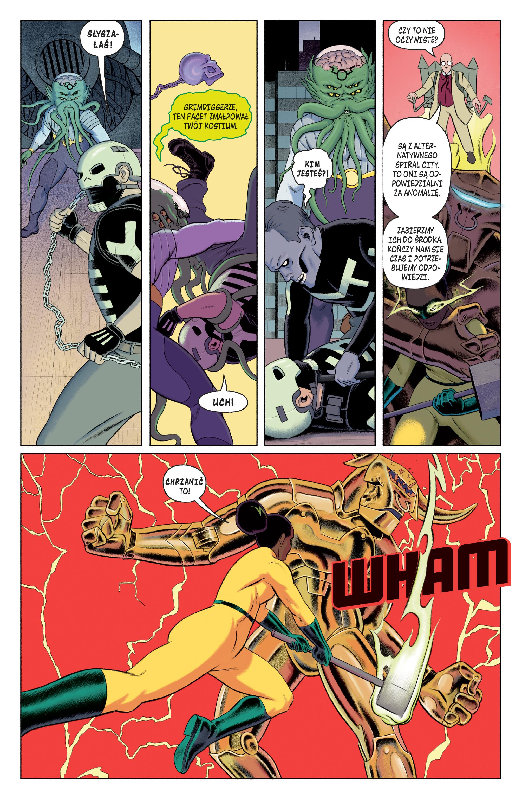 Druga część opowieści o superbohaterce Lucy Weber, zwanej Czarnym Młotem, a noszącej to miano w spadku po ojcu, największym herosie w dziejach Spiral City. Wielowymiarowy koszmar sieje spustoszenie. Aby położyć kres temu szaleństwu, Czarny Młot łączy siły ze Skulldiggerem. Czy pomoc superbohatera, który do tej pory zajmował się zwykłymi bandytami, okaże się przydatna w obliczu tak ogromnego zagrożenia? Do akcji włączy się też genialny naukowiec badający Parastrefę. Ponownie pojawi się też Pułkownik Weird, ale po tym mającym w głowie jeden wielki chaos podróżniku kosmicznym nie wiadomo, czego się spodziewać... Autorem scenariusza serii jest gwiazda amerykańskiego komiksu Jeff Lemire („Opowieści z hrabstwa Essex”, „Animal Man”, „Łasuch”), a rysunki stworzyli Malachi Ward i Matthew Sheean (którzy wcześniej wspólnie narysowali komiksy „Ancestor” i „Expansion”). Album zawiera materiały opublikowane pierwotnie w serii Black Hammer: Reborn #5–8 wydawnictwa Dark Horse Comics.Szczegółowe informacje na temat książki Czarny Młot Odrodzenie Tom 5 Część 2