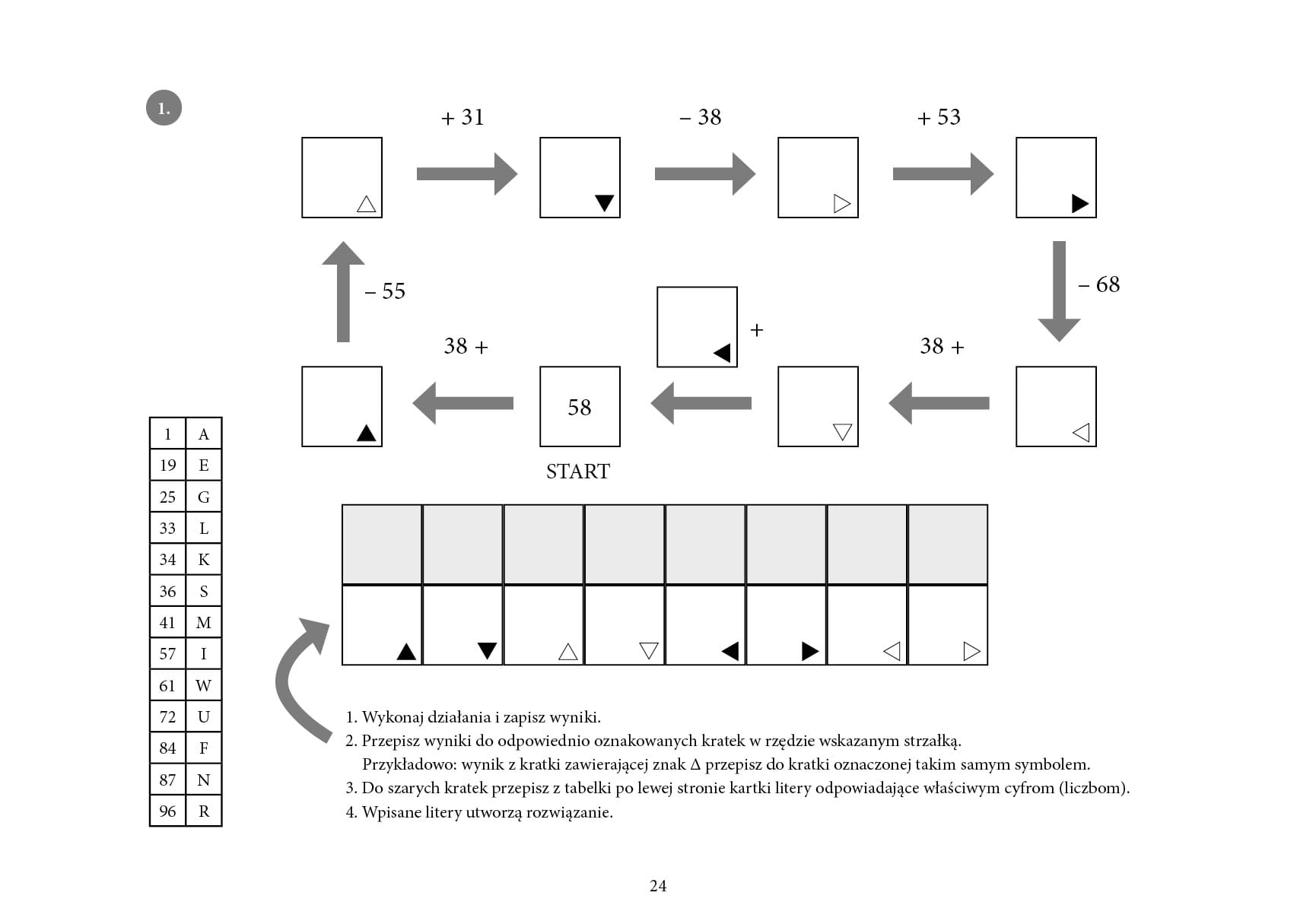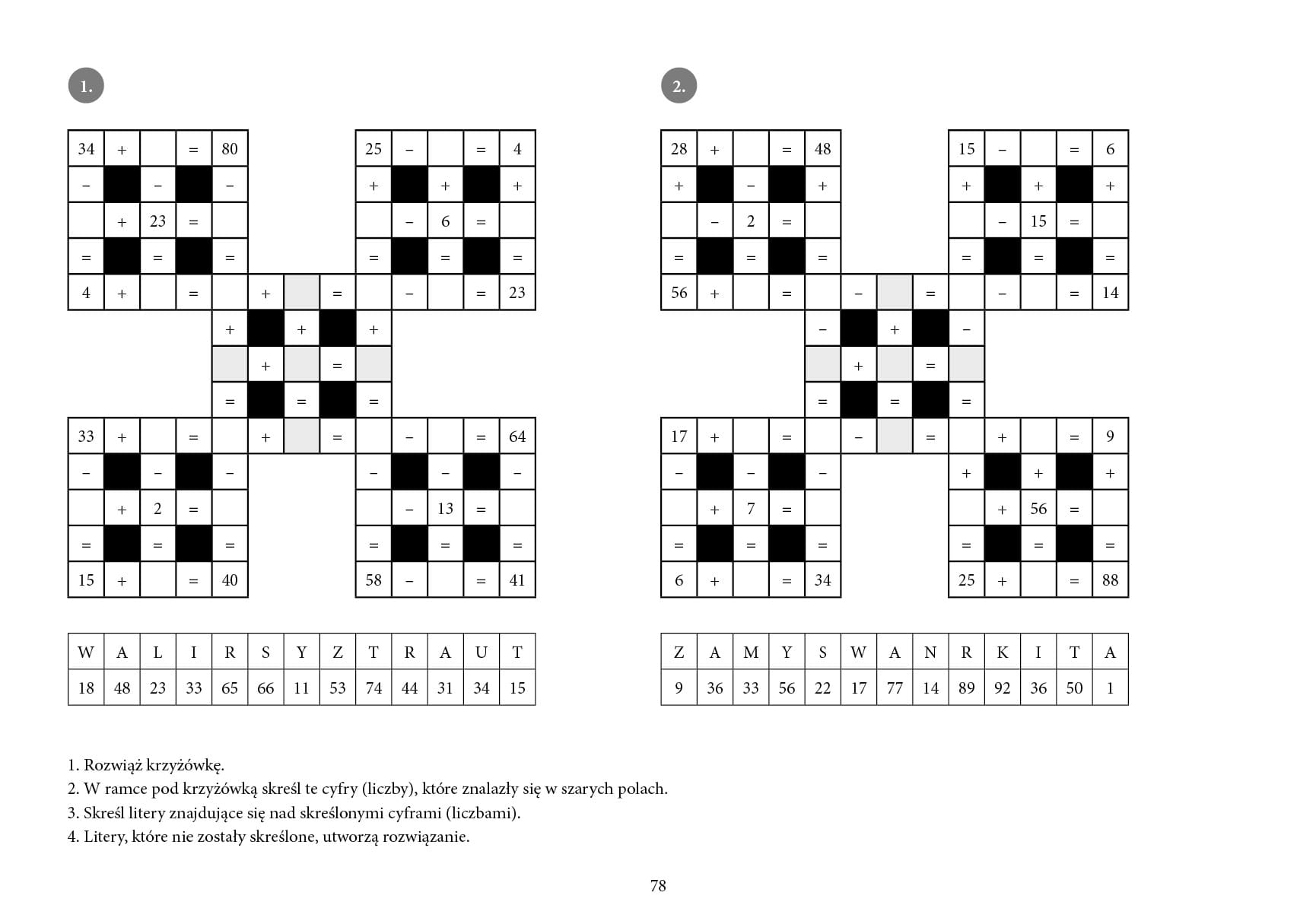 W każdym z zadań po prawidłowym wykonaniu działań można odczytać hasło, co z jednej strony uatrakcyjnia zadanie, z drugiej zaś pozwala na szybką ocenę prawidłowości obliczeń. Proponowane zadania doskonalą również percepcję wzrokową.