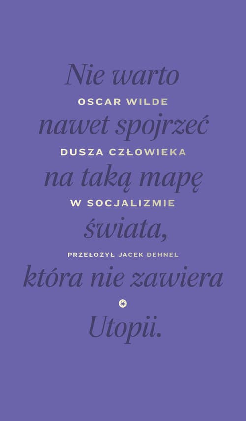 Głośny esej polityczny, w którym Wilde rysuje wizję nowego ustroju opartego na wolności, humanizmie i sztuce. Autor kwestionuje wszelkie formy politycznego, społecznego i ekonomicznego przymusu wobec jednostki, podkreśla potencjał drzemiący w każdym z nas, nawołuje do życia autentycznego i godnego – a takie najpełniej może się realizować w obszarze kreacji artystycznej. Odżegnuje się od schlebiania masowym gustom i broni indywidualizmu. „Czy to utopijne? – pyta. I odpowiada: – Nie warto nawet spojrzeć na taką mapę świata, która nie zawiera Utopii’. Esej w nowym przekładzie Jacka Dehnela został opatrzony posłowiem dr Cezarego Błaszczyka, który pozwala umieścić tekst w szerszym kontekście historii doktryn politycznych i ukazuje Wilde’a jako pisarza politycznego, anarchistę i jednego z ojców studenckiej rewolty maja’68.