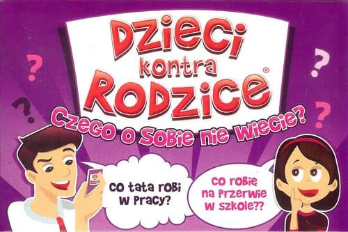 Dynamiczna gra rodzinna, w której dzieci i rodzice rywalizują odpowiadając na wiele interesujących i zabawnych pytań. Wygrywa drużyna, która odpowie na więcej pytań. W grze pytania o dwóch poziomach trudności, specjalnie przygotowane dla dzieci i dla rodziców. Opakowanie zawiera 50 kart do gry, 150 pytań i instrukcję.