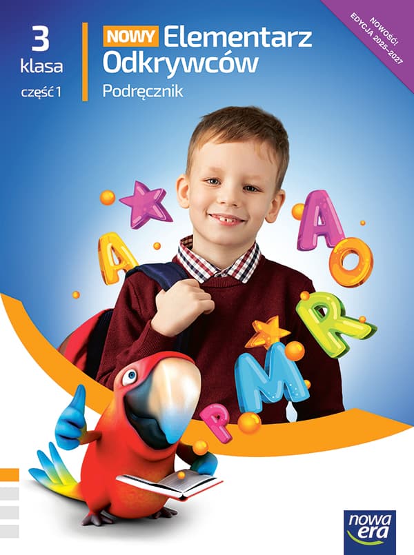 Podręcznik z serii „NOWY Elementarz Odkrywców" do klasy 3, cz. 1 prowadzi ucznia przez świat edukacji polonistycznej, społecznej i przyrodniczej. Pomaga w tworzeniu właściwych postaw społecznych oraz systemu wartości, wspiera dziecko w radzeniu sobie z uczuciami i nazywaniem emocji. Kształtuje dziecięcy świat wartości poprzez wychowawcze teksty, inspirujące do twórczej rozmowy i wyciągania wniosków. Wspiera w doskonaleniu umiejętności czytania i słuchania ze zrozumieniem dzięki specjalnie dobranym różnego rodzaju tekstom.