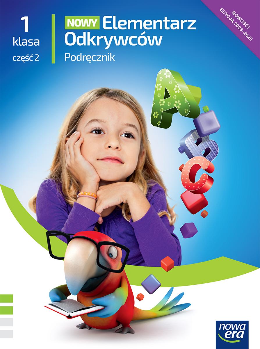 Podręcznik z serii „Nowy Elementarz Odkrywców" do klasy 1, część 2, NOWOŚĆ! 2023-2025 wprowadza ucznia w świat edukacji polonistycznej, społecznej i przyrodniczej. Pomaga w tworzeniu właściwych postaw społecznych oraz systemu wartości, wspiera dziecko w radzeniu sobie z uczuciami i nazywaniem emocji.Kształtuje niezbędną umiejętność czytania, harmonijnie połączoną z wprowadzaniem dziecka w świat wartości, poprzez wychowawcze teksty, inspirujące do twórczej rozmowy i wyciągania wniosków.Wspiera indywidualizację nauczania dzięki tekstom do nauki czytania na kilku poziomach trudności.Kształtuje kompetencje społeczne i inteligencję emocjonalną dzięki cyklowi Między nami, którego teksty pozwalają rozpoznawać i nazywać emocje, wartości i postawy.Rozwija samodzielność dziecka oraz umiejętność współdziałania.Stopniowo wprowadza różne formy wypowiedzi ustnych i pisemnych, krok po kroku przygotowując dziecko do samodzielnego pisania tekstów w czwartej klasie – kurs Nasz język polski.Wprowadza dziecko w świat nauki o języku w ramach kursu Nasz język polski.Zaciekawia i pobudza wyobraźnię bogatą różnorodną szatą graficzną.Pozwala bliżej poznać świat przyrody i uczy szacunku do otaczającego nas świata na stronach Przygody przyrody.Umożliwia zrozumienie i zapamiętanie treści przyrodniczych, zachęca do obserwacji świata przyrody oraz ułatwia rozumienie w nim roli człowieka dzięki bogactwu realistycznych zdjęć.