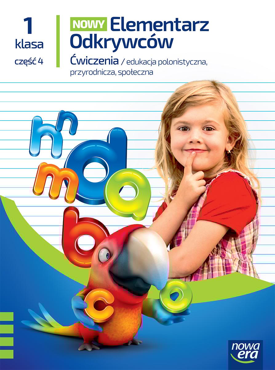 Ćwiczenia z serii „Nowy Elementarz Odkrywców" do klasy 1, część 4 wprowadzają ucznia w świat edukacji polonistycznej, społecznej i przyrodniczej, kształtują niezbędną umiejętność czytania i pisania oraz stosując zasadę stopniowana trudności, przybliżają naukę o języku.Kształtują umiejętność pisania i czytania dzięki odpowiednio dobranym ćwiczeniom usprawniającym rozwój koordynacji wzrokowo-słuchowej.Rozwijają sprawność poprawnego pisania liter dzięki licznym i różnorodnym ćwiczeniom – zaczynając od szlaczków literopodobnych, przez kolejno wprowadzane litery pisane po śladzie i w liniaturze, połączenia literowe, a także wyrazy i zdania.Usprawniają motorykę małą, percepcję i pamięć wzrokową na stronach z kolorowankami, rozsypankami literowymi i wyrazowymi oraz rebusami.Doskonalą sprawność językową i wzbogacają słownictwo.Wprowadzają uczniów w świat nauki o języku.Pozwalają bliżej poznać świat przyrody i uczą szacunku do otaczającego nas świata na stronach Przygody przyrody.Umożliwiają zrozumienie i zapamiętanie treści przyrodniczych oraz zachęca do obserwacji świata przyrody.