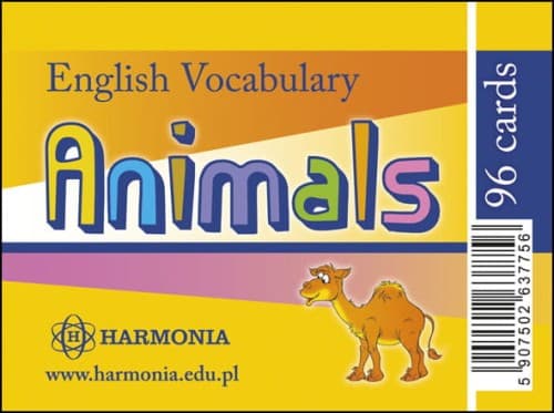 Jest to zestaw 96 kolorowych kart do nauki angielskich słówek – nazw zwierząt.