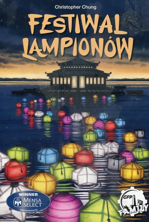 Znów nastał ten wyjątkowy czas w roku; wieczór pełni księżyca dwunastego miesiąca kalendarza lunarnego. Pora uczcić tę wyjątkową okazję, organizując festiwal lampionów. W tym roku to ty zaczarujesz jezioro wspaniałaym połączeniem kolorowych lampionów. Zawartość: 36 kafelków Jeziora 56 Kart Talentóe 30 Kart Talentów 4 Karty Pomocy 20 znaczników Łódek instrukcja. Gra dla 2-4 gracyz, w wieku powyżej lat 8.