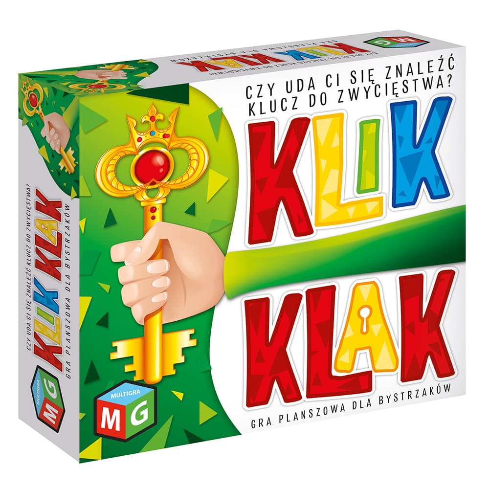 KLIK KLAK to gra dla bystrzaków, która rozwija pamięć, refleks i spostrzegawczość. 20 kłódek i 20 kluczy - czy uda ci się odnaleźć wszystkie pary, zanim zrobią to inni gracze? Zmierz się ze swoimi przyjaciółmi w ekscytującej rozgrywce i zgarnij laur zwycięstwa.