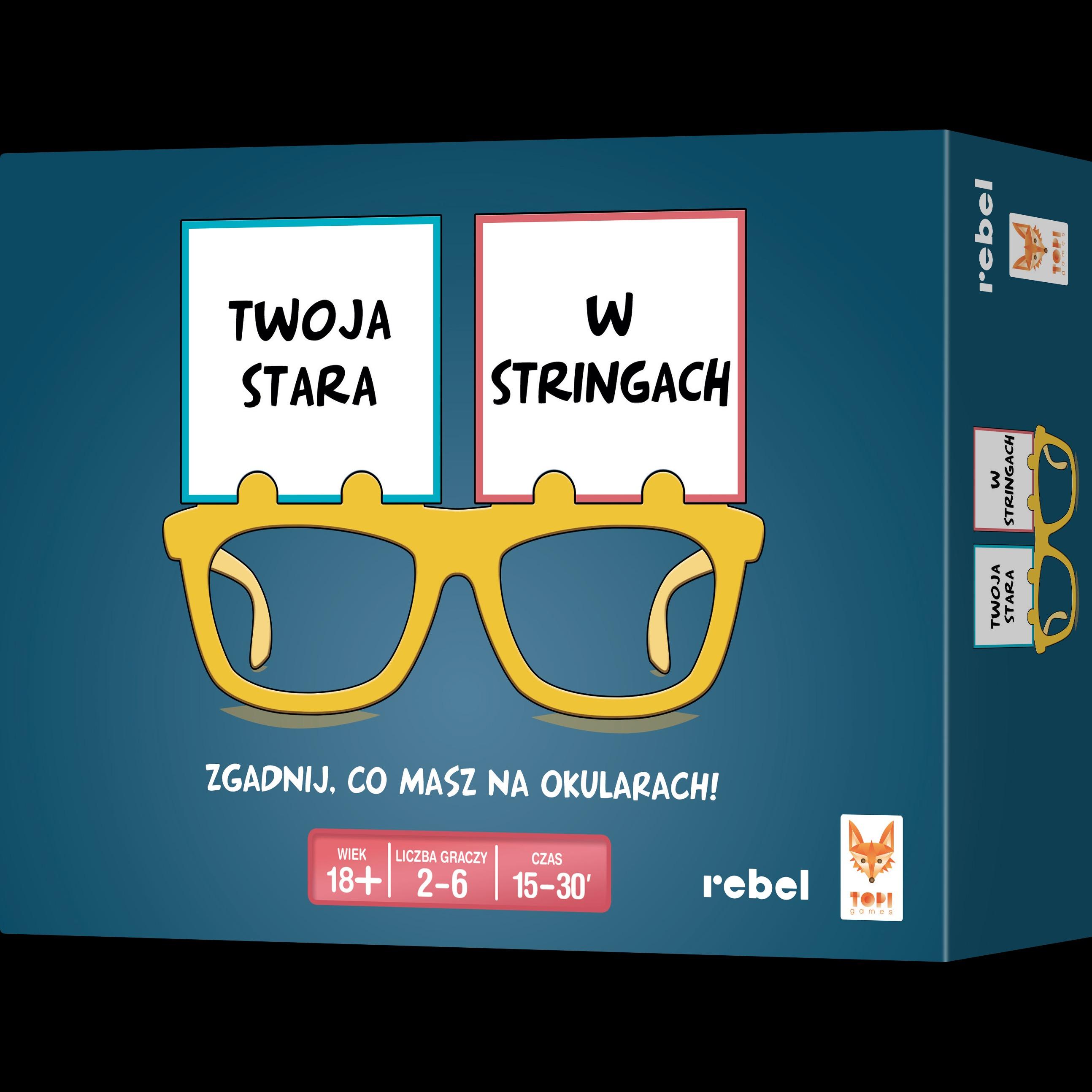 Twoja stara w stringach to dedukcyjna karcianka, w której próbujemy odgadnąć, kim jesteśmy i co robimy lub w jakich okolicznościach się znajdujemy. Maria Skłodowska-Curie robi pazurki, Krzysztof Krawczyk pisze maturę, Shrek walczy w KSW… Do odgadnięcia są setki kombinacji! Wetknij 2 karty w oksy i zadawaj pytania, na które można odpowiedzieć tylko „tak” lub „nie”. Spróbuj znaleźć rozwiązanie zanim przeciwnicy odkryją własne tożsamości!