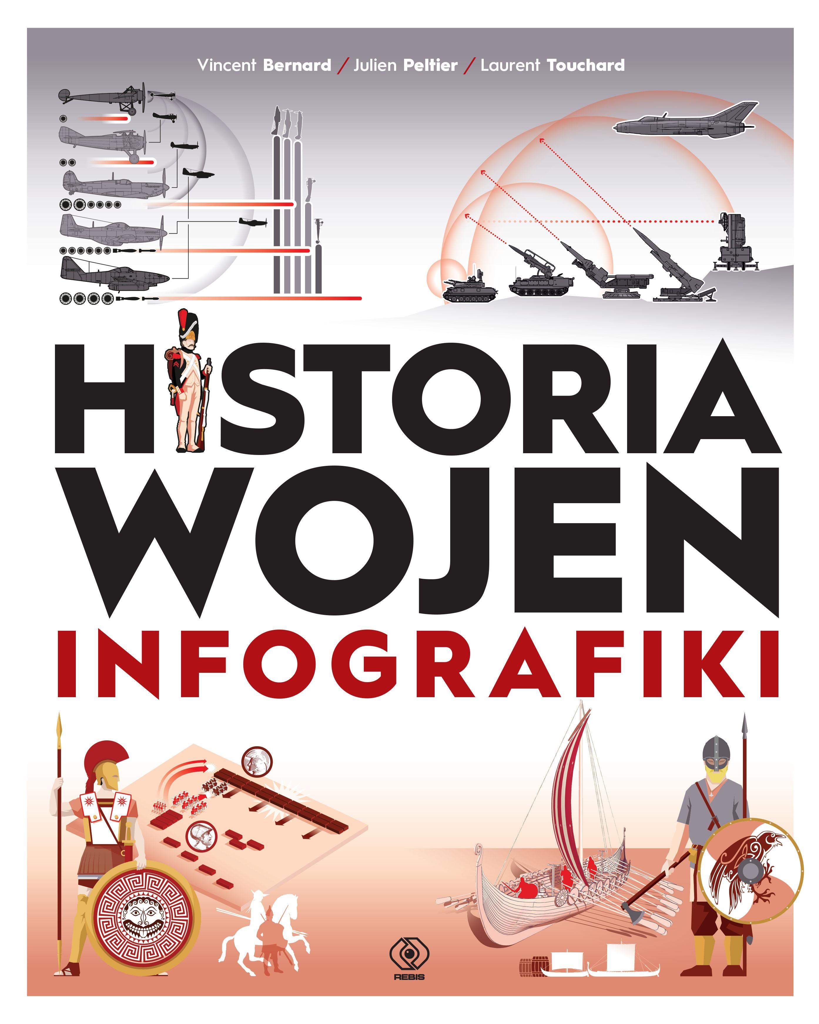 Niezwykle szeroki, a przy tym atrakcyjny i zrozumiały, historyczny obraz wojny. W tym wyjątkowym tomie infografik autorzy poruszają najważniejsze kwestie związane z fenomenem wojny w szerokiej perspektywie – od najdawniejszych czasów, gdy broń robiono z kamienia i kości, przez pojawienie się koła i udomowienie zwierząt, wykorzystanie brązu i kutego żelaza, wynalezienie prochu strzelniczego i silnika spalinowego aż po współczesne technologie cyfrowe. Epoka po epoce stawiają i odpowiadają na pytania: Z kogo i z czego składały się armie? Jak były zorganizowane? Czym walczyły? Do jakich celów dążyły i jak te cele osiągały? Jakie zmiany nastąpiły w nich przez tysiące lat? Dzięki możliwościom, jakie stwarzają infografiki, czytelnik może jednym rzutem oka objąć rozmiary podbojów Aleksandra Wielkiego, hiperbitwy Wielkiej Wojny, łupieżcze szlaki wikingów, organizację floty ateńskiej pod Salaminą, a także budowę machin miotających czy średniowiecznego zamku. To książka niezbędna do zrozumienia zjawiska, którego straszliwą trwałość wciąż potwierdzają bieżące wydarzenia.