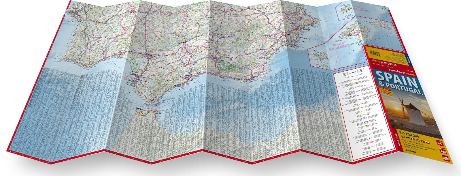 O książce Hiszpania i Portugalia laminowana mapa samochodowa 1:1 100 000
