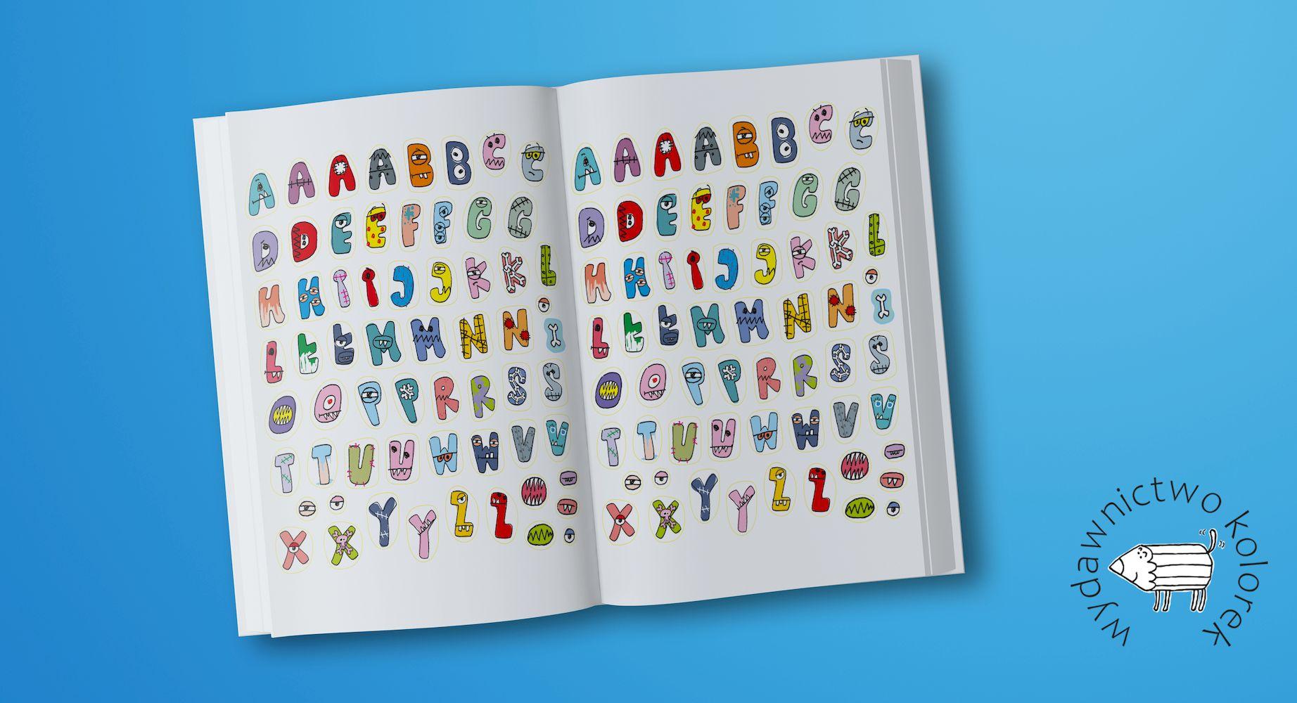 Ponadto w środku książki znajdziesz kolorowanki i arkusze naklejek z literkami.