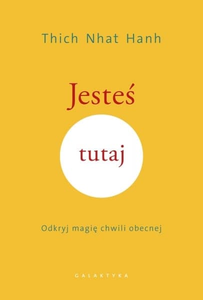 Jesteś tutaj to słowa, które mówią same za siebie, choć – patrząc na nasze codzienne życie – więcej czasu jesteśmy tutaj nieobecni. Większość z nas żyje w niepokoju z powodu tego, co miało miejsce w przeszłości, a jednocześnie nosi w sobie lęk przed tym, co skrywa przed nami jutro. Lecz zarówno wczoraj, jak i jutro istnieją tylko w wyobraźni i to właśnie ona jest tym urojonym miejscem, w którym spędzamy większość naszego życia; to tam podejmujemy decyzje, wyciągamy wnioski, tworzymy związki, szukamy szczęścia. Nierzadko się jednak okazuje, że jest to szczęście urojone, innymi słowy: jest to nasze wyobrażenie o szczęściu. W tej książce Thich Nhat Hanh uczy, jak wrócić do tu i teraz, do tego jedynego momentu w naszym życiu, tej jedynej rzeczywistości, w której autentycznie istniejemy. Mając do niej dostęp, zaczynamy doświadczać nieograniczonego bogactwa swojego życia w każdym kolejnym wdechu i wydechu. Przestajemy wówczas uciekać przed tym, co za nami, i biec ku temu, co przed nami. Ale to zatrzymanie nie jest wcale niczym pasywnym, wręcz przeciwnie – świadomość tego, że mamy w sobie tak potężne narzędzie mocy, jakim jest oddech, wprawia nas w ruch, dzięki czemu życie nabiera zupełnie innej, nieznanej nam dotąd dynamiki. Wówczas ta chwila tu i teraz, która na pierwszy rzut oka wydawać by się mogła czymś wąskim i ograniczonym, okazuje się wrotami do rzeczywistości obejmującej sobą wszystko i każdego. Zaczynamy zauważać wokół nas inne istoty, ich troski i cierpienia; zaczynamy rozumieć, czego wymaga od nas dana sytuacja, i doskonale wiemy, co powinniśmy zrobić, ponieważ ta mądrość nie jest niczym wykoncypowanym, lecz wynika bezpośrednio z zaistniałych przyczyn i warunków, które się na nią złożyły. Wtedy po raz pierwszy stajemy się uzdrowicielami samych siebie, a jednocześnie jesteśmy w stanie nieść pomoc innym i całemu światu; mówiąc po buddyjsku, stajemy się wówczas bodhisattwami, istotami, których istotą jest mądrość i nieustające współczucie. Thich Nhat Hanh własnym życiem pokazuje, że nie jest to żadna teoria. Tą samą mądrością i współczuciem dzieli się teraz z tobą, abyś znalazł w sobie odwagę i odzyskał wiarę w moc, która jest w tobie – w przekształcającą cały wszechświat moc świadomego oddechu. Czy jesteś gotów?