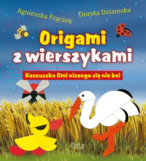 Poczytajcie o przygodach ciekawej wszystkiego kaczuszki i złóżcie z papieru modele origami: osę, pająka, szczura , biedronkę, bociana, wiatrak, stracha na wróble, muchomory i nietoperza. A żeby przyjemniej się składało, przeczytajcie o każdej z tych postaci wesoły wierszyk! Mała książeczka, a tyle zabawy! Kolorowo ilustrowana książka z wykorzystaniem form origami płaskiego z koła, zawiera wesołe opowiadanie o przygodach kaczuszki, a także 10 modeli origami z instrukcjami składania oraz 10 wierszyków.
