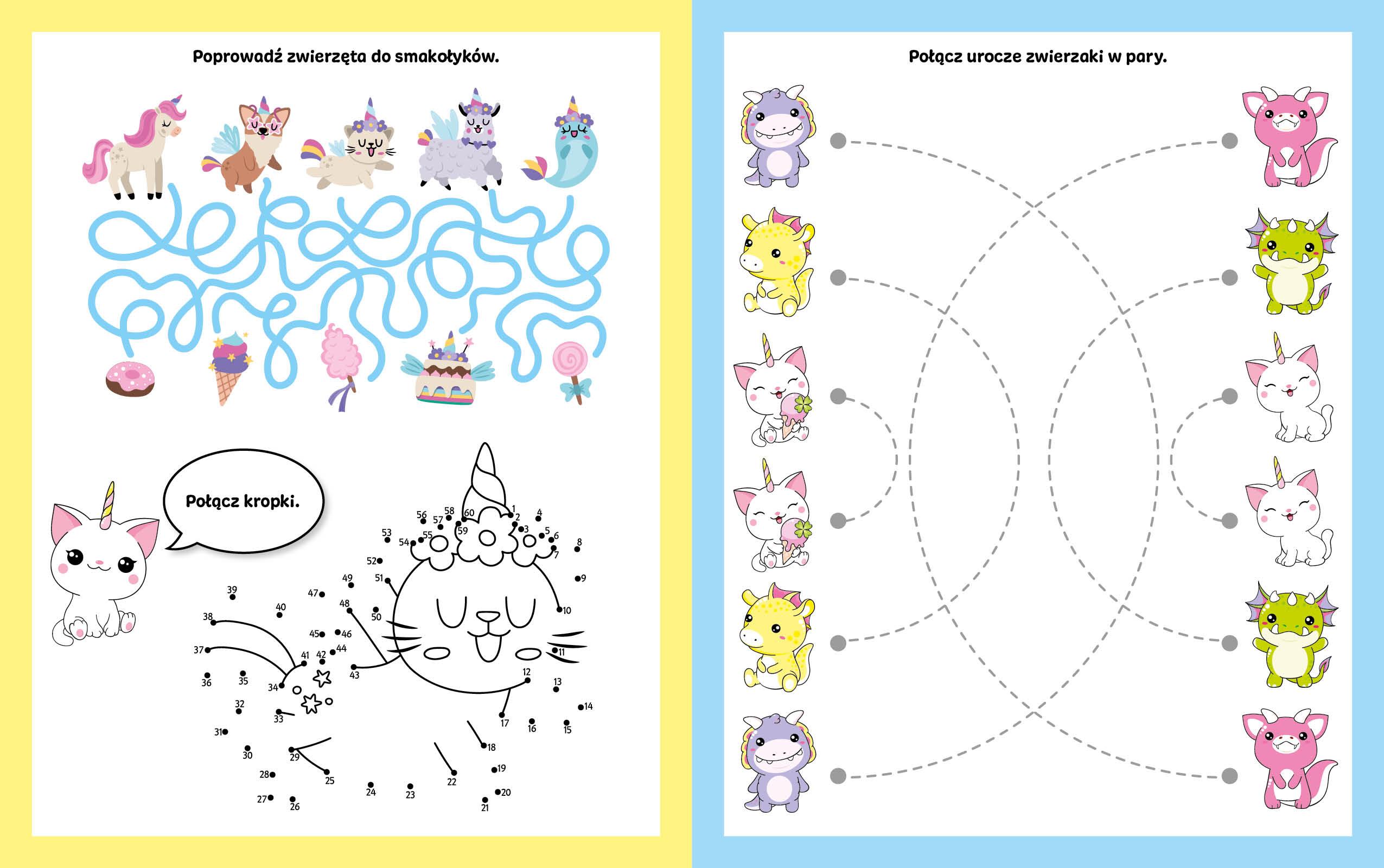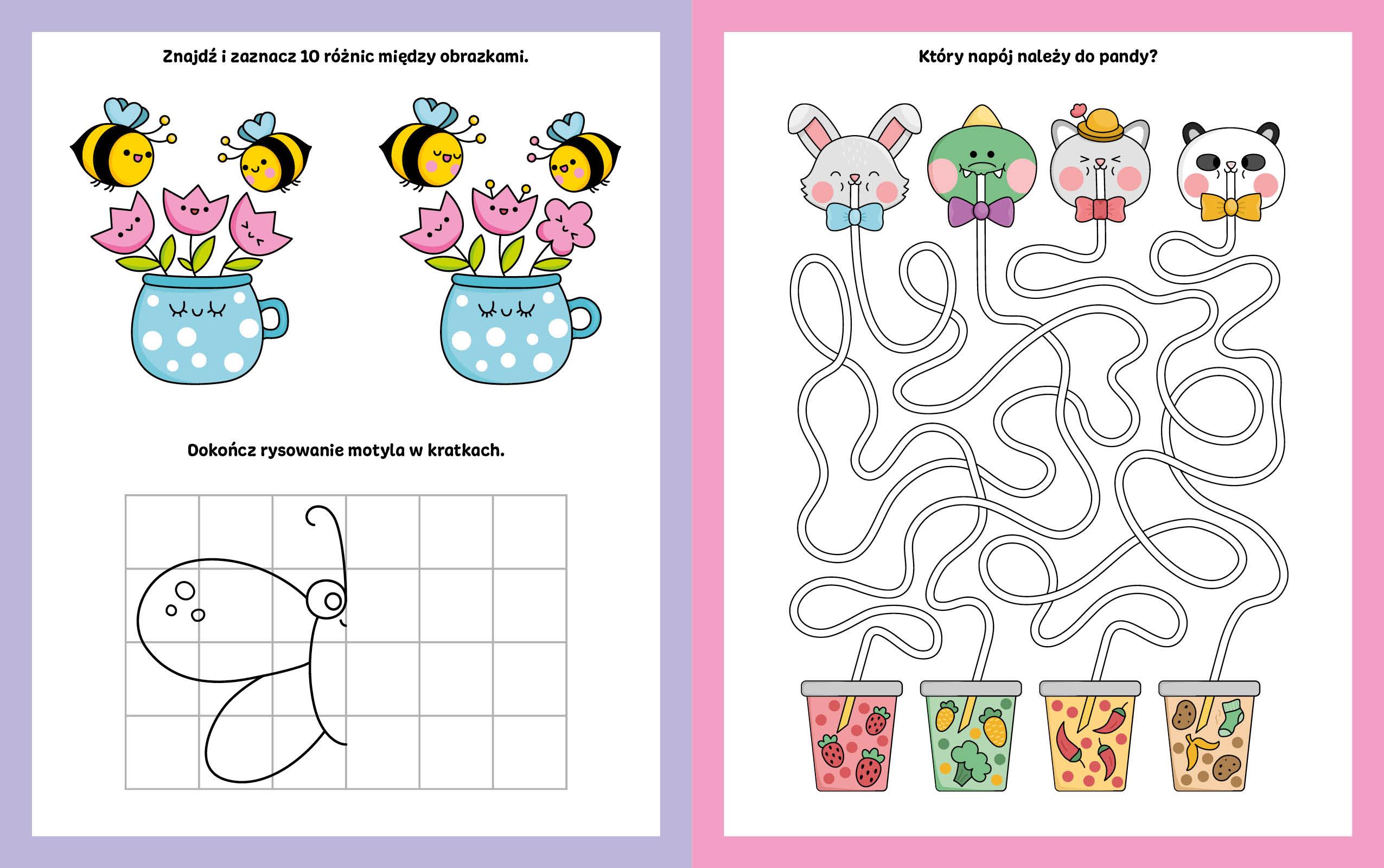 Kawaii to seria pełna zabaw, zagadek i labiryntów z dołączonym flamastrem suchościeralnym. Ciekawe zadania zapewnią zabawę na długie godziny, a możliwość ścierania rysunków pozwoli na tworzenie i odkrywanie nowych przygód wiele razy. Baw się kreatywnie i odkrywaj świat pełen niespodzianek.