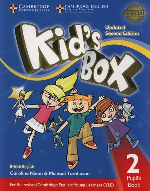 Ten siedmiopoziomowy kurs zachwyca dzieci i inspiruje nauczycieli swoimi błyskotliwymi pomysłami na lekcje. Idealny do ogólnego użytku Kid's Box Drugie wydanie jest teraz zaktualizowane o nowe słownictwo i ćwiczenia, dzięki czemu w pełni obejmuje program zaktualizowanych testów Cambridge English: Young Learners. The Pupil's Book 2 przedstawia i ćwiczy nowy język poprzez zabawne historie oraz fantastyczne piosenki i zajęcia, aby zapewnić dzieciom przyjemny i pewny początek nauki języka angielskiego. Cambridge English: Testy typu Starter oceniają postępy i zapoznają dzieci z międzynarodowym formatem testów.