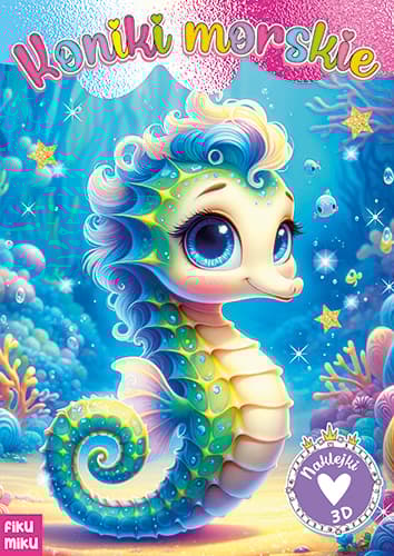Cudownie mieniąca się, metalizująca i połyskująca kolorowanka z niezwykłymi konikami morskimi. Zachwyca nowoczesnym designem, pięknymi barwami i wypukłymi naklejkami.