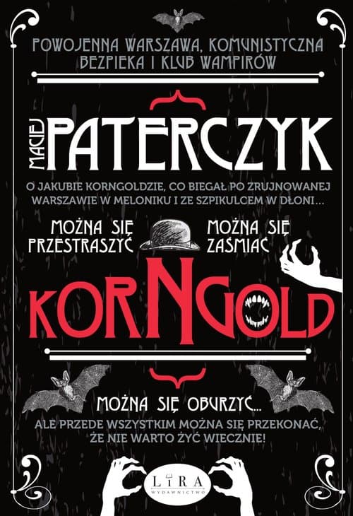Do zniszczonej po wojnie Warszawy powoli powraca życie. Wśród ruin i zgliszczy dochodzi do serii tajemniczych zbrodni, a ludzie szepczą między sobą, że to sprawka wampira. Jakub Korngold, łowca wampirów, podąża jego śladem i trafia do taniego hotelu robotniczego. Hotel, z zaminowaną piwnicą i przerwami w dostawach prądu, skrywa mroczną tajemnicę. Korngold, chcąc złapać krwiożerczą istotę, będzie musiał ją rozwiązać. Nie słyszeliście o Korngoldzie? Nic dziwnego. Komunistyczna bezpieka i Klub Wampirów zrobiły wiele, by jego imię zostało zapomniane… To wielowątkowa i wielopoziomowa powieść o pojedynku wampirzycy Niny, dzięki której poznajemy całą historię, i łowcy wampirów. W tym starciu wygrywają zło i mrok. Ale dobro nie powiedziało jeszcze ostatniego słowa. Przynajmniej taką mamy nadzieję… Po przeczytaniu tej książki dostaniecie gęsiej skórki na dźwięk krakania wron. Sprawdzicie, czy dobrze zamknęliście okna. Przyjrzycie się z niepokojem obrazom wiszącym na ścianie. I naprawdę zaczniecie się bać pająków.