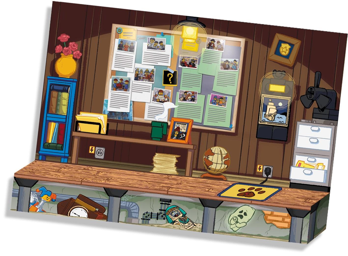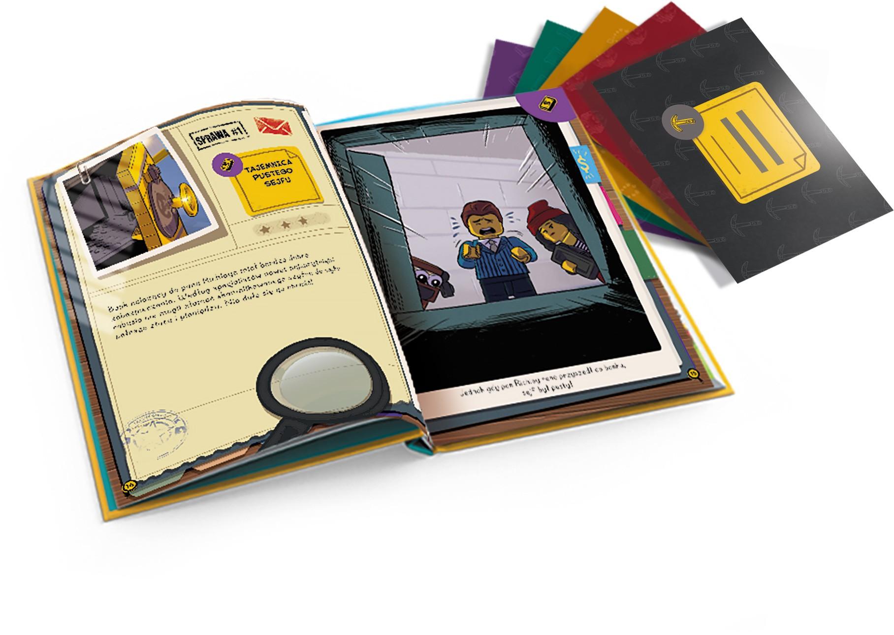 • 24 klocki LEGO z których można zbudować minifigurkę pani detektyw z akcesoriami oraz dwa unikatowe modele psów zaprojektowane specjalnie do tej książki