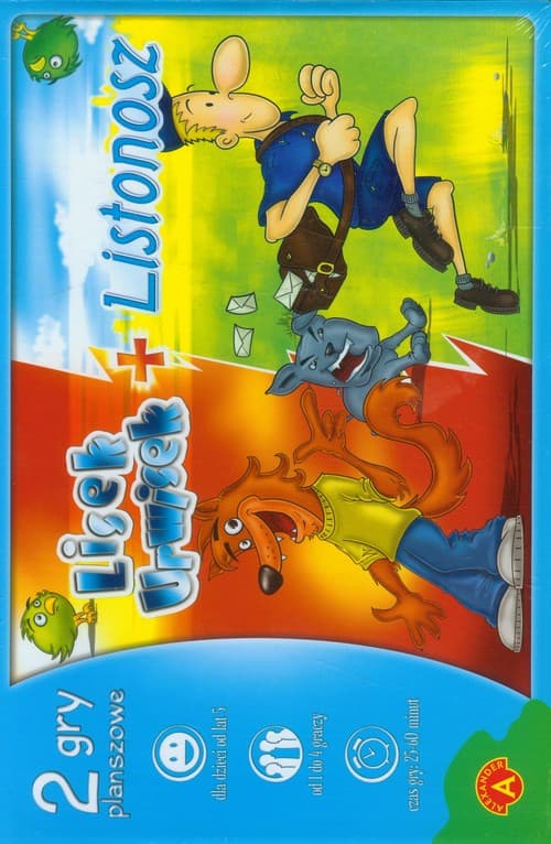 Listonosz to gra, w której jesteś Listonoszem. Twoim celem jest bezpiecznie dostarczyć listy do skrzynki pocztowej. Czeka Cię długa i trudna droga, musisz być uważny i mieć oczy dookoła głowy, by ktoś niepostrzeżenie nie ukradł Twoich listów. Lisek Urwisek to gra, której bohaterem jest Lisek Urwisek, który bardzo lubi robić sobie żarty. Twoim zadaniem jest dotrzeć jak najszybciej do mety nie dając się nabrać Liskowi Urwiskowi. Zawartość pudełka: dwustronna plansza, kostka do gry, 4 pionki, instrukcja. Gra dla 1-4 graczy. Wiek: 5+