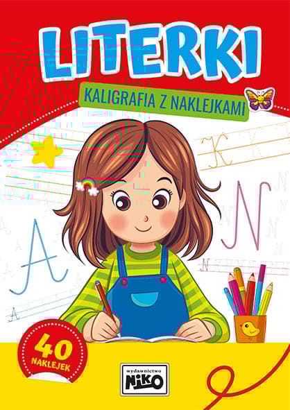 Książka Literki – kaligrafia z naklejkami to zbiór ćwiczeń w pisaniu liter i sylab w powiększonej liniaturze. Książka w uporządkowany sposób uczy dziecko pisania i przygotowuje je do rozpoczęcia edukacji szkolnej. Zadania skupiają się na odwzorowywaniu liter po śladzie oraz samodzielnym pisaniu. Kierunek pisania wskazują strzałki, więc ćwiczenia mogą być wykonywane samodzielnie przez dziecko.