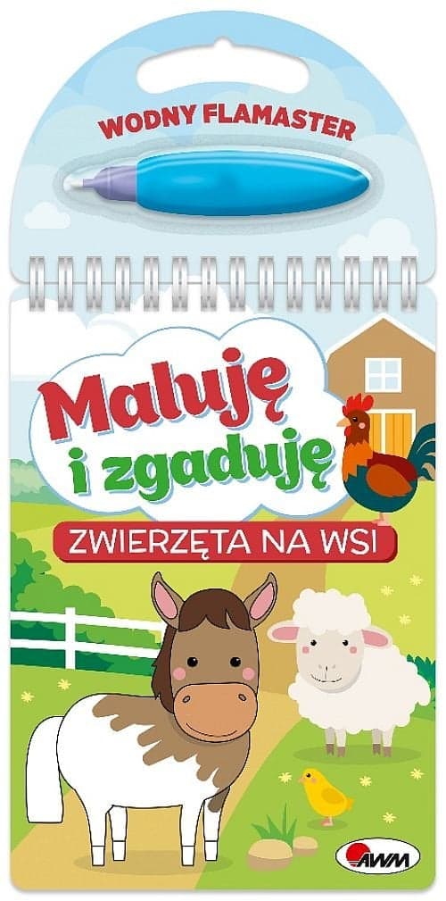 Malowanka wodna WIELOKROTNEGO UŻYTKU – po wyschnięciu zabawa zaczyna się od nowa! W komplecie FLAMASTER, który wystarczy napełnić wodą. Książka wykonana z trwałego kartonu – służy nie tylko jako książka do KOLOROWANIA, lecz także jako ZGADYWANKA. Dziecko poznaje różne wiejskie ZWIERZĘTA. Malując dołączonym flamastrem wodnym, maluch nadaje kolory elementom przykrytym SPECJALNĄ FARBĄ. Takie odkrywanie kolejnych zwierzątek daje MNÓSTWO RADOŚCI. Gdy obrazek wyschnie, dziecko może pomalować go PONOWNIE. Flamaster ma WYGODNY KSZTAŁT i jest PROSTY W UŻYCIU – wystarczy napełnić go wodą i już można zacząć kolorowanie. Książka pozwala poznać dzieciom RÓŻNE ZWIERZĘTA żyjące NA WSI. Na każdej rozkładówce są PYTANIA, na które należy odpowiedzieć po jej pomalowaniu. Książka • zapewnia ROZWÓJ MANUALNY • ćwiczy KONCENTRACJĘ • dostarcza INFORMACJI • rozwija WYOBRAŹNIĘ • wzbogaca SŁOWNICTWO • pozwala miło SPĘDZIĆ CZAS MALUJĘ I ZGADUJĘ Seria poręcznych MALOWANEK WODNYCH