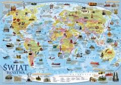 Plakat z mapą ŚWIAT PAŃSTWA z serii Pisakiem po mapie rozbudzi w dziecku ciekawość świata i zachęci do planowania podróży.