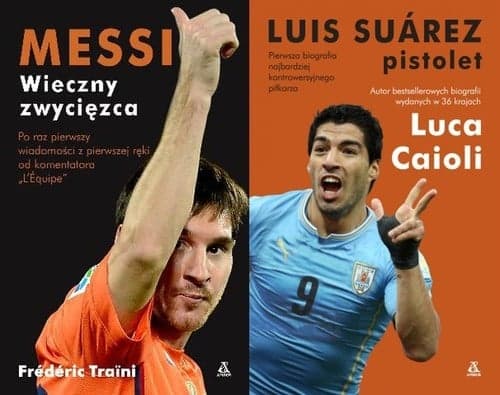 Messi Traini wie o Messim wszystko! Znany dziennikarz sportowy Frédéric Traini od dwudziestu lat mieszka w Barcelonie i relacjonuje aktualności FC Barcelony dla prestiżowego dziennika sportowego „L’Équipe”, gdzie piszą wyłącznie najlepsi dziennikarze, oraz dla radia RTL. W 2010 razem z „L’Équipe” otrzymał nagrodę za najlepszy wywiad. Już od dłuższego czasu zamierzałem napisać tę książkę. Chciałem pokazać, że Lionel Messi nie jest tak grzeczny i układny, jak mogłoby się wydawać. To ktoś, kto nie miał łatwego życia, kto ma bardzo silną wolę i kto mógł zawsze liczyć na bliskich. Messi jest wielkim zawodnikiem, dziś jego talent jest niezaprzeczalny, jednak aby do tego dojść, musiał walczyć. Jego droga była usiana przeszkodami, ale nigdy się nie poddał. Frédéric Traini Biografia Messiego Frédérica Traini zawiera więcej informacji niż jakakolwiek książka o piłkarzu uznanym w dwudziestym czwartym roku życia za najlepszego zawodnika świata. Na taką książkę o Messim czekałeś! Luis Suárez. Pistolet Pierwsza biografia najbardziej kontrowersyjnego piłkarza. Piłkarz, który na boisku potrafi zachowywać się jak szaleniec, który pozdrawiał kibiców obscenicznymi gestami, który za pierwsze ugryzienie przeciwnika zyskał przydomek „Kanibala”, który obraził czarnoskórego Patrice’a Evrę, jest dziś idolem swojej drużyny. Teraz z wyczekiwanym od 25 lat pucharem Premier League cały Liverpool szaleje za 27-letnim Urugwajczykiem, piłkarskim wulkanem, który wywrócił do góry nogami najstarszą ligę świata. Najlepszy piłkarz Urugwaju, najlepszy piłkarz turnieju Copa America, jedyny zagraniczny gracz, który zdobył ponad 100 bramek dla Ajaxu Amsterdam, Piłkarz Roku w Anglii w sezonie 2013/2014, zdobywca największej liczby bramek dla Liverpoolu w jednym sezonie… zawieszony na Mistrzostwach Świata 2014 za ugryzienie włoskiego zawodnika. Luca Caioli odwiedził Salto, rodzinne miasto Suáreza, Montevideo, gdzie Luis zaczynał grać w piłkę, Amsterdam i Liverpool. Dotarł do nieznanych faktów, rozmawiał z przyjaciółmi piłkarskiego geniusza, z piłkarzami i trenerami, którzy udzielili mu wywiadów na wyłączność. Ze swadą, która uczyniła jego poprzednie książki światowymi bestsellerami, zbudował gol po golu kompletną biografi ę kontrowersyjnego piłkarza, który wzbudza emocje na boisku i poza nim.
