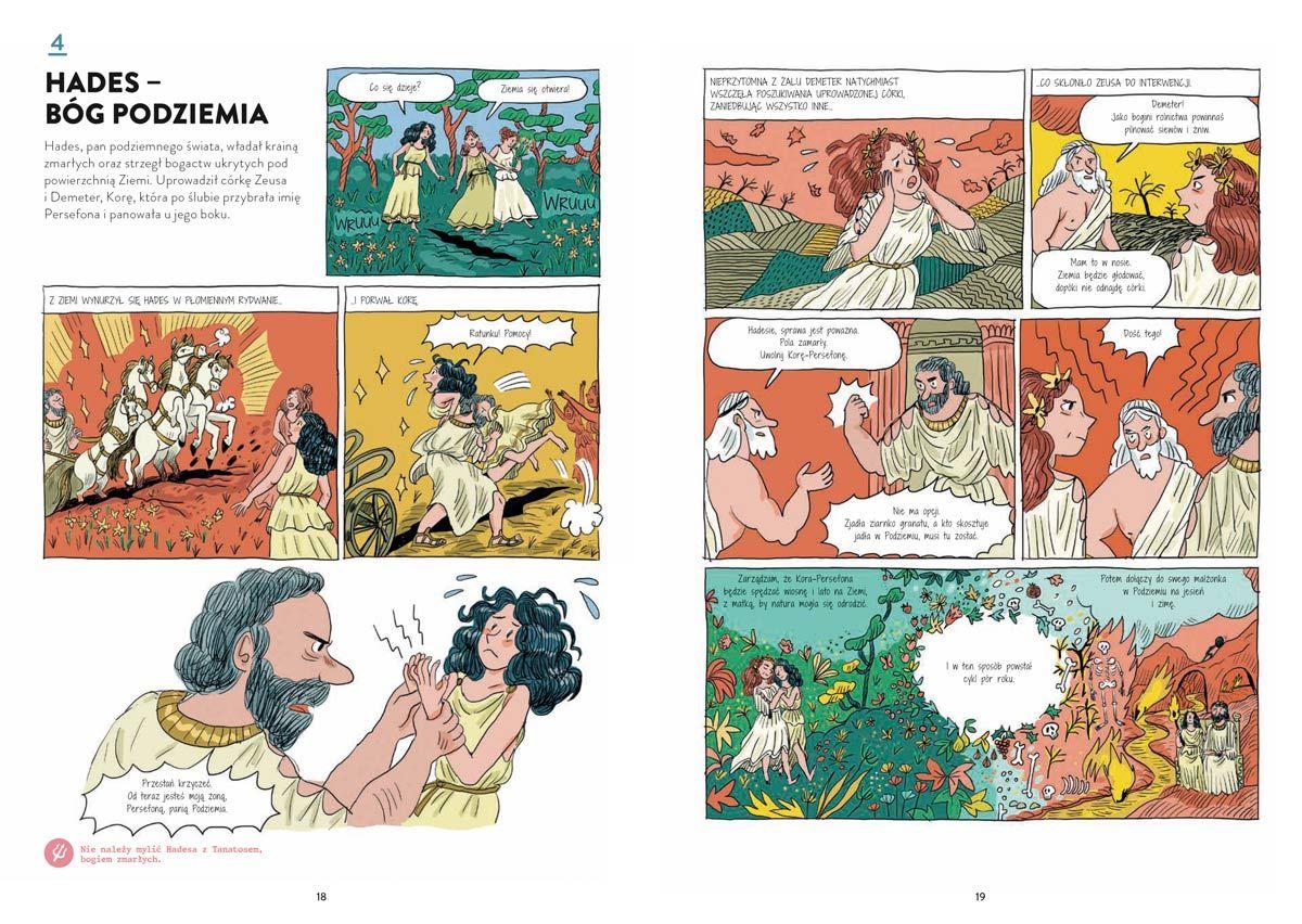 Jak narodziła się Atena? Kim byli bogowie z Olimpu? Dlaczego Odyseusz to mistrz forteli? Jakich dwanaście prac wykonał Herakles? Z jakiego powodu wybuchła wojna trojańska? Kto zabił Minotaura? Odkryj przygody bogów oraz herosów z mitologii greckiej i rzymskiej opowiedziane w formie komiksu – od powstania świata za sprawą Gai i Uranosa aż po założenie Rzymu przez Romulusa i Remusa. Książka zawiera ponad 20 komiksowych opowieści, drzewo genealogiczne bogów oraz dodatkowe informacje wyjaśniające realia, kontekst historyczny, nawiązania do mitów w sztuce czy we frazeologizmach. Sandrine Mirza – ukończyła historię na paryskiej Sorbonie oraz studia we Francuskim Instytucie Prasy. Przez lata pracowała we francuskich wydawnictwach. Jako autorka specjalizuje się w tematach dotyczących historii kultury, historii i cywilizacji. Clotka (właśc. Clotilde Szymanski) – francuska autorka komiksów oraz ilustratorka książek dla dzieci i młodzieży. Ukończyła paryską Wyższą Szkołę Sztuk Plastycznych. Współpracuje z wieloma znanymi francuskimi wydawnictwami. Powyższy opis pochodzi od wydawcy.