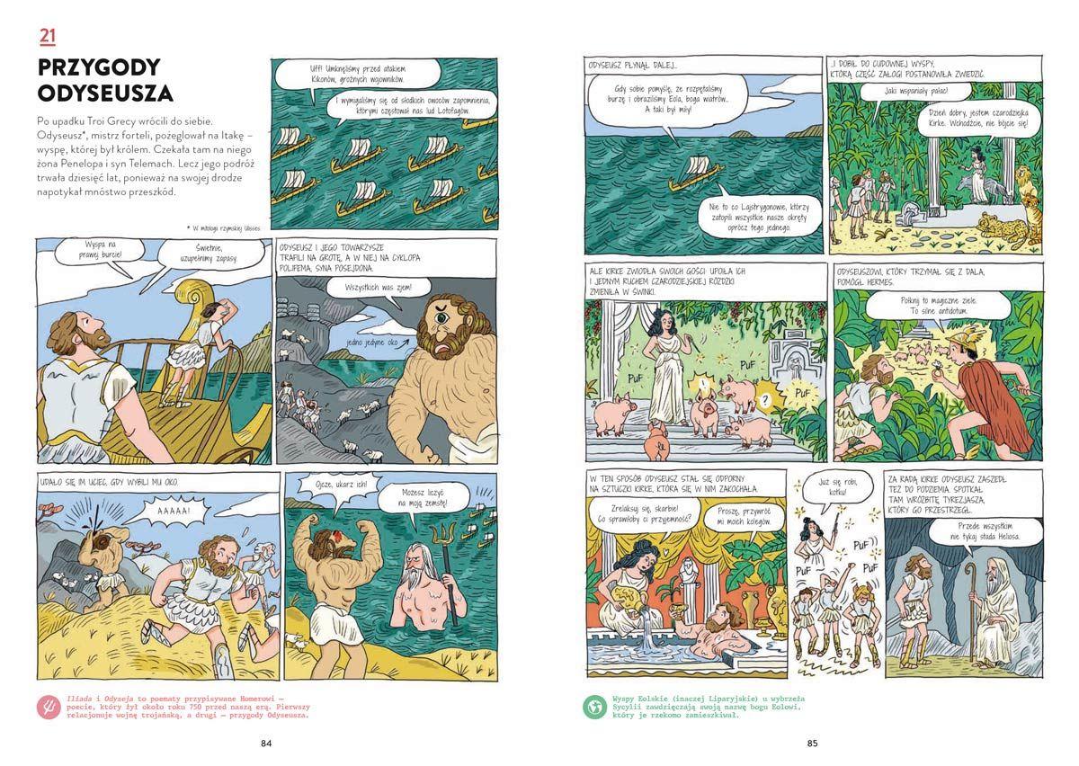 Tą książkę, a właściwie komiks czytało się świetnie. To powinno się czytać w szkołach.Poznajmy historię z przyjemnością.Znajdziemy tu najpopularniejszych 15 mitów greckich i rzymskich, które zostały zilustrowane świetną kreską pasująca do klimatu historycznego. Od stworzenia świata i bogów aż po powstanie Rzymu. Do historii dołączone są ciekawostki w dole strony.Jak dla mnie to świetne wydanie, które powinno znaleźć się w biblioteczce dzieci, a także dorosłych.