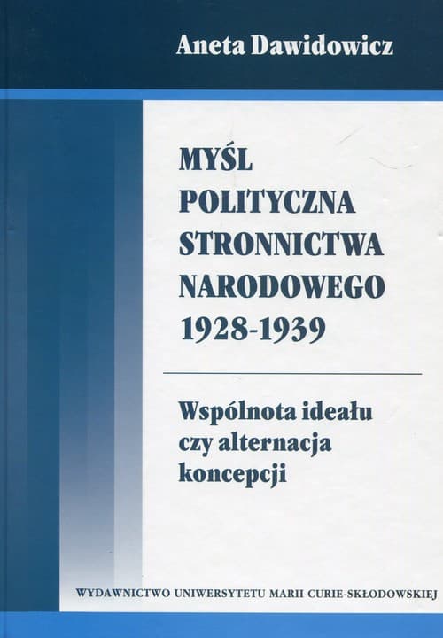 Szczegółowe informacje na temat książki Myśl polityczna Stronnictwa Narodowego 1928-1939 Wspólnota ideału czy alternacja koncepcji