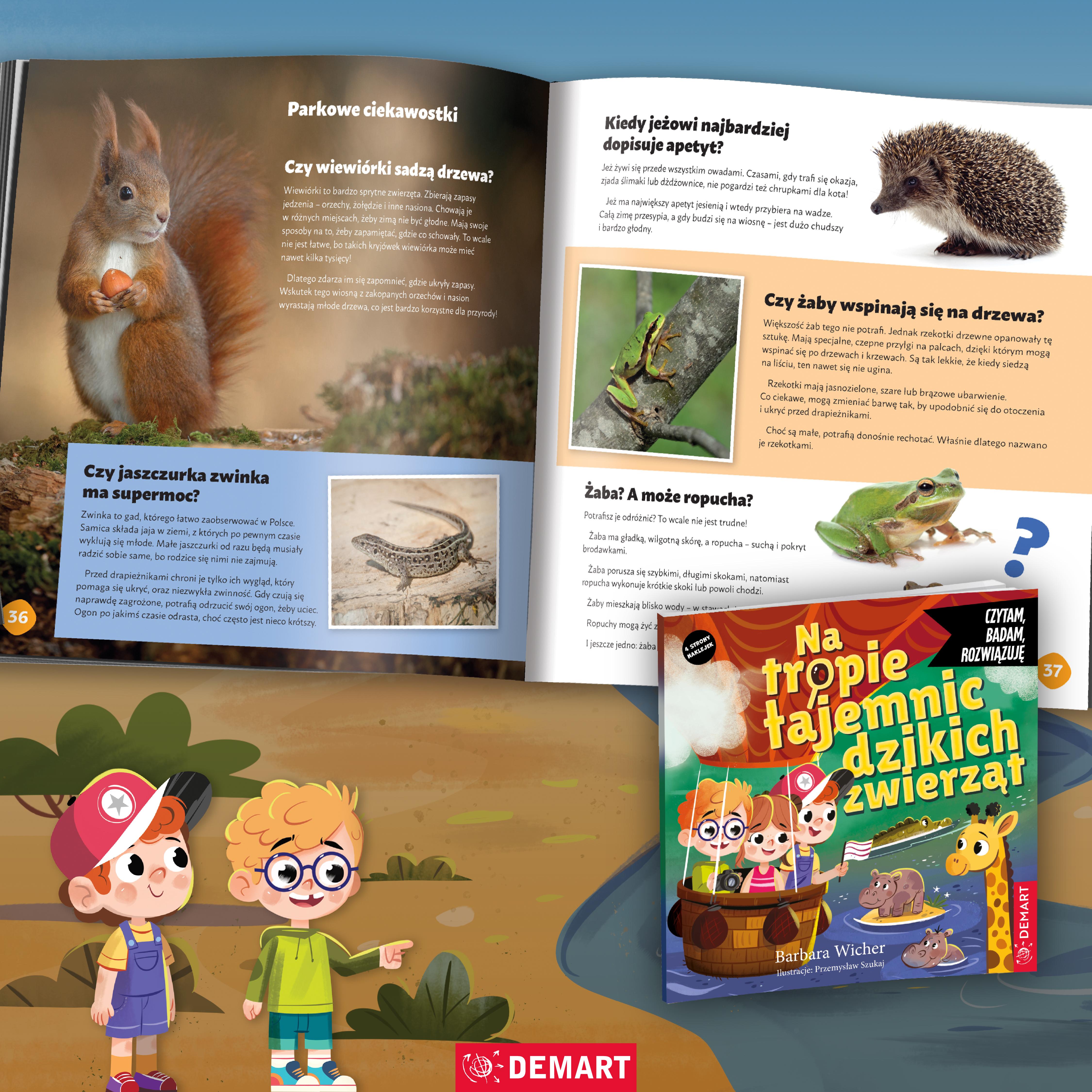 W kolejnej części serii „Czytam, badam, rozwiązuję” Wojtek, Nela, Franek i ich niezastąpiony dziadek ruszają na poszukiwanie niezwykłych mieszkańców świata fauny – tych, których można spotkać w ogrodzie, na placu zabaw, w parku czy w lesie. Okazuje się, że tuż obok nas żyją fascynujące gatunki, które potrafią zaskoczyć sprytem, wyglądem i niezwykłymi zwyczajami.