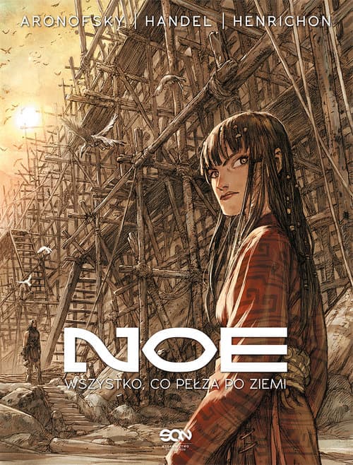 Noe był człowiekiem takim jak my. Kochamy, kłamiemy, zabijamy... Ale to właśnie on miał zadecydować o tym, czy ocalejemy. Prace nad arką, jedyną nadzieją na zachowanie życia na ziemi, trwają. Noe, jego synowie oraz upadłe anioły pracują w pocie czoła, a monumentalny szkielet okrętu rośnie w oczach. Z czterech stron świata nadciągają wszelkie stworzenia: ptaki, gady, owady, a także ssaki, w tym ten najniebezpieczniejszy – żądny krwi człowiek. Nabrzmiałe deszczem chmury kłębią się coraz niżej, zwiastując rychły koniec. Darren Aronofsky, wybitny scenarzysta i reżyser kultowych filmów – Pi (1998), Requiem dla snu (2000), Źródło (2006), Zapaśnik (2008), Czarny łabędź (2010) – tym razem sięgnął po nową formę wyrazu. Powieść graficzna Noe to wzruszająca historia człowieka, który na przekór losowi dąży do spełnienia najważniejszego celu w swoim życiu – ochrony najbliższych. Na podstawie komiksu powstał film Noe: Wybrany przez Boga. W rolach głównych występują: Russell Crowe, Emma Watson, Anthony Hopkins, Jennifer Connelly.