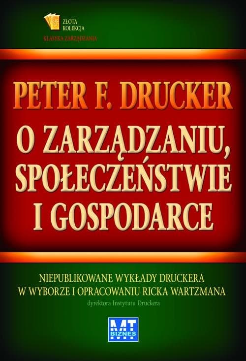 Książki i artykuły Druckera przez kilkadziesiąt lat wywierały wpływ na przywódców instytucji państwowych, biznesowych i non profit, a jego podstawowe koncepcje pomagały w kierowaniu najlepszymi organizacjami na całym świecie. Jednak na kartach tej książki nawet najzagorzalsi miłośnicy Druckera znajdą coś nowego. Zbiór O zarządzaniu, społeczeństwie i gospodarce. Niepublikowane wykłady Druckera w wyborze i opracowaniu Ricka Wartzmana zawiera trzydzieści trzy wykłady wygłaszane zarówno dla specjalistów z różnych dziedzin, jak i studentów. Pokazują one wybitnego myśliciela w akcji, jak pogłębia, cyzeluje i poddaje próbom swoje koncepcje. Wśród znakomitych mów wygłaszanych od II wojny światowej i początków telewizji po epokę internetu i wyrośnięcie Chin na potęgę gospodarczą znalazły się między innymi: • Problemy z utrzymaniem ciągłości i pełnego zatrudnienia (1957) • Zarządzanie wielką organizacją (1967) • Wpływ strukturalnych zmian społeczno-gospodarczych świata na amerykański biznes (1977) • Organizacja oparta na wiedzy (1987) • Pracownik wiedzy i społeczeństwo wiedzy (1994) • Globalizacja (2001) Czasami skromny, czasami władczy i stanowczy, Drucker zawsze potrafił przykuwać uwagę słuchaczy. Ta książka tak samo działa na czytelników. O zarządzaniu, społeczeństwie i gospodarce. Niepublikowane wykłady Druckera w wyborze i opracowaniu Ricka Wartzmana to nowy i ważny dodatek do dzieł człowieka, który położył fundamenty pod zarządzanie w znanym nam dzisiaj kształcie.