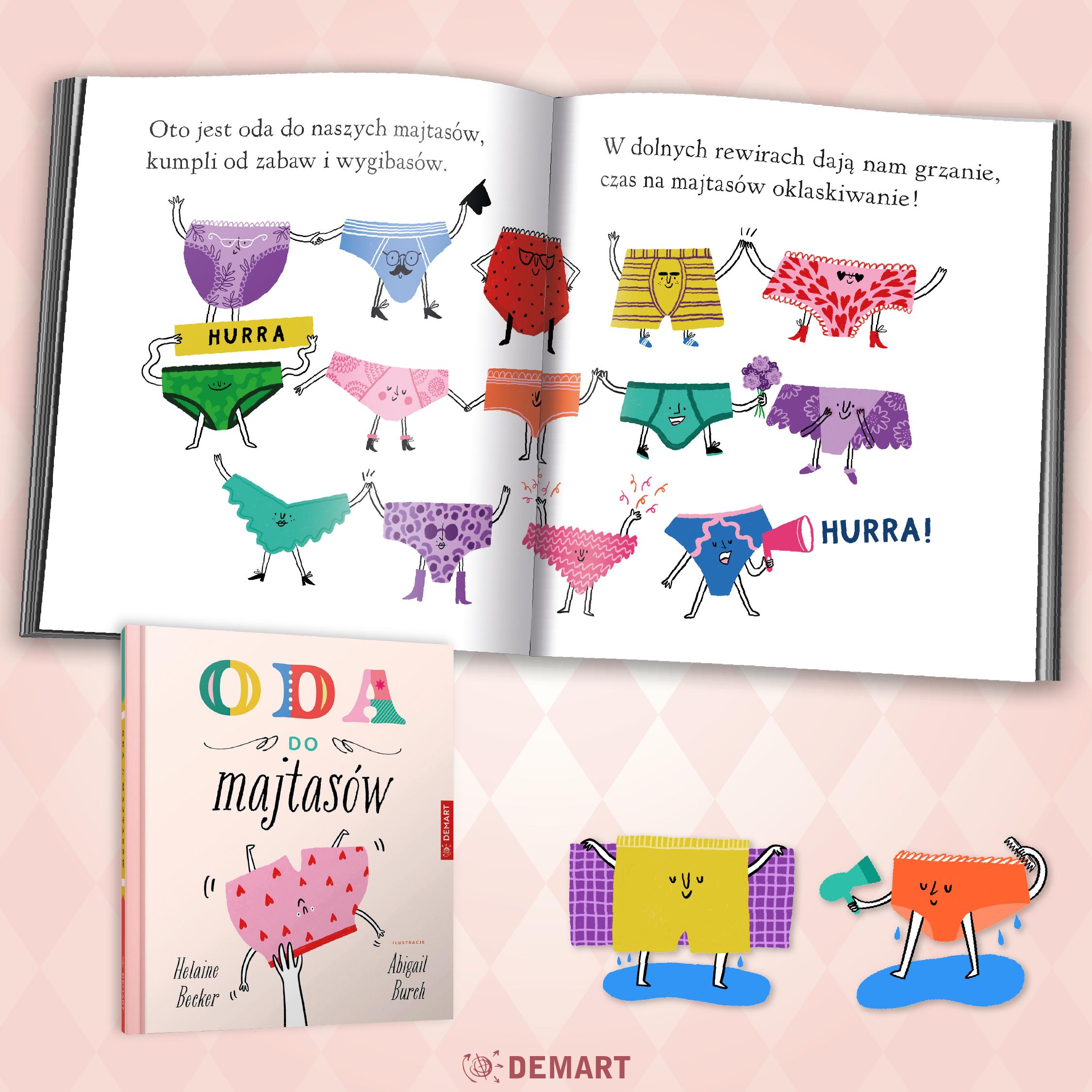 Majtasy – bohaterowie niedocenieni, a przecież niezastąpieni! W tym tomiku stają wreszcie na należnym im piedestale. Oda o majtasach jest zabawna, przewrotna i pełna czułości, a humor subtelnie balansuje tu na granicy dziecięcej radości i językowej finezji.