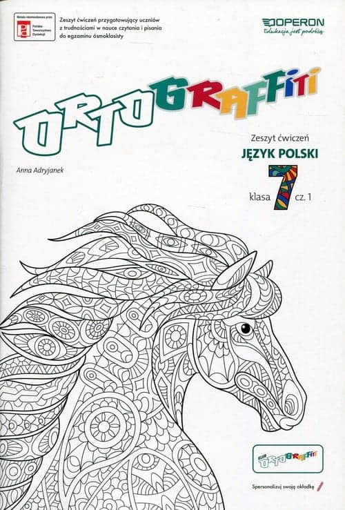 Ta publikacja to specjalnie stworzony zestaw ćwiczeń dla uczniów klas 7 mających trudności w uczeniu się. Praca Metodą Ortograffiti z użyciem zeszytów Ortograffiti 7. Język polski cz. 1 i cz. 2 zwiększy kompetencje ucznia w obszarze czytania, pisania, rozumienia dłuższego tekstu oraz poleceń, a także przetwarzania i wykorzystywania informacji w różny sposób. Ponadto zadania mają na celu usprawniać i kompensować funkcje poznawcze, takie jak: koncentracja uwagi, orientacja w przestrzeni, funkcje wzrokowe, ruchowe i słuchowe, a także doskonalić ucznia w trudnej dla niego materii grafii, ortografii i interpunkcji. W efekcie pracy uczeń zwiększy poziom wiedzy i umiejętności koniecznych do uzyskiwania pozytywnych ocen z przedmiotów szkolnych, właściwych dla jego potencjału oraz przezwyciężać trudności w uczeniu się nie tylko języka polskiego, ale też innych przedmiotów. Zadania w zeszytach zostały tak opracowane, by przygotować ucznia z trudnościami do egzaminu ósmoklasisty.