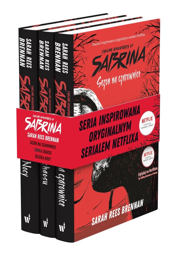 Seria inspirowana oryginalnym serialem Netflixa. Pakiet zawiera 3 książki: "Sezon na czarownice" To ostatnie lato Sabriny Spellman przed jej szesnastymi urodzinami, które będą prawdziwym przełomem… Sabrina od dziecka uczy się magii i zaklęć od swoich ciotek, Zeldy i Hildy, ale jednocześnie żyje jak zwykła nastolatka – chodzi do liceum, spotyka się z przyjaciółkami i ma chłopaka o imieniu Harvey. Jednak czas spędzony wśród śmiertelników nieubłaganie dobiega końca… Pożegnanie z przyjaciółkami i Harveyem wydaje się trudniejsze, niż się spodziewała. Niepewna uczuć Harveya, Sabrina postanawia rzucić na chłopaka zaklęcie miłosne. Przecież od zawsze marzyła, aby być prawdziwą czarownicą! Teraz jednak zaczyna mieć wątpliwości, czy magia nie sprowadzi jej na zbyt mroczną drogę… "Córka chaosu" Decydujące starcie w Greendale. Tuż przed końcem roku Sabrina Spellman podejmuje decyzję: porzuca naukę w Baxter High, przyjaciół, a nawet swojego chłopaka Harveya… Dołącza do grona wiedźm i czarowników z Akademii Sztuk Niewidzialnych w Greendale. Gdy próbuje użyć magii, by ocalić życie swojej przyjaciółki Roz, niechcący przywołuje ducha przynoszącego pecha. Konsekwencje okazują się katastrofalne. A przecież obiecała ciotce Zeldzie, że nie będzie się pakować w kłopoty! Postanawia poprosić o pomoc swoich nowych znajomych z Akademii: Nicka Scratcha, prymusa i szatańsko przystojnego flirciarza, oraz Prudence, najpopularniejszą wiedźmę w szkole, sprytną, lecz bezlitosną. Ale czy może im zaufać? "Ścieżka Nocy" Piekło ma nową królową… Sabrina Spellman właśnie odkryła prawdę o swoim pochodzeniu, a to oznacza, że będzie władać Piekłem! Tyle że ona sama – jak zwykle – ma inne plany na przyszłość… Co prawda wpada na pomysł, jak pokrzyżować plany diabelskiego ojca, ale nie wszystko idzie po jej myśli i teraz Lucyfer tkwi uwięziony w ciele jej chłopaka, Nicka Scratcha! Zrozpaczona dziewczyna natychmiast postanawia ruszyć mu na ratunek, Gdy ciotka Zelda wspomina legendę związaną z otwarciem piekielnych bram, młoda czarownica bez wahania bierze sprawy w swoje ręce. Szkoda tylko, że Zelda zapomniała wspomnieć o grożących jej niebezpieczeństwach… Czy Sabrina i jej przyjaciele zdołają ocalić Nicka? I czy wyjdą z tego cało?