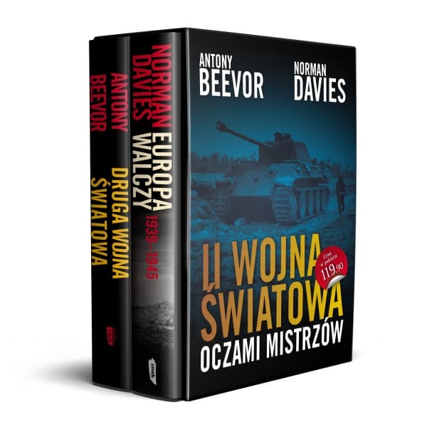 Największy konflikt w dziejach oczami mistrzów. Norman Davies i Antony Beevor rzucają nowe światło na historię drugiej wojny światowej. Norman Davies Europa walczy Norman Davies przedstawia w jednym tomie wszystkie aspekty drugiej wojny światowej w Europie. Efektem jest zapierająca dech w piersiach, odkrywcza panorama historii kontynentu z lat 1939–1945. Wizja autora jest zaskakująco szeroka. Brytyjski historyk zajmuje się nie tylko armiami, polityką czy cierpieniem ludności cywilnej, ale nawet miłośnikami muzyki, przestępcami czy związkowcami. Przedstawi całościową wizję konfliktu i demaskuje stronniczość jego dotychczasowego postrzegania. Antony Beevor Druga wojna światowa Panorama drugiej wojny światowej widziana oczami szeregowych żołnierzy, dowódców, polityków i ludności cywilnej. Wszystkie bitwy i fronty wojenne w jednej książce. Antony Beevor – mistrz nowoczesnej historii wojskowości perfekcyjnie opisuje każdy kolejny etap wojny. Ukazuje jej okrucieństwo i dramat zwyczajnych ludzi. To kontrowersyjna i nowatorska praca historyczna oraz pasjonująca lektura, od której nie sposób się oderwać. W prezencie mapa pokazująca krok po kroku poszczególne etapy drugiej wojny światowej!