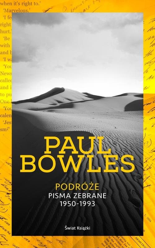 Paul Bowles był jednym z najwybitniejszych amerykańskich pisarzy XX w. Jego powieści to już klasyka, na czele z otoczoną niemal kultem „Pod osłoną nieba”, znaną również z wersji filmowej w reżyserii Bernardo Bertolucciego. W tej książce mamy jednak do czynienia z twórczością innego rodzaju – utworami opisującymi mniej lub bardziej egzotyczne miejsca, do których Bowles – zawsze ciekawy świata bystry obserwator – dotarł w swych licznych podróżach, które odbywał na przestrzeni niemal pięćdziesięciu lat. Ponad czterdzieści zebranych w tomie tekstów ukazuje szeroką panoramę: od Paryża, przez Cejlon, Tajlandię, Kenię, po Maroko, gdzie pochodzący z Nowego Jorku Bowles zamieszkał na stałe w 1947 roku. Tekstom towarzyszą zdjęcia z archiwum autora. Wstęp do książki napisał inny sławny pisarz i podróżnik Paul Theroux, a szczegółowe kalendarium życia i podróży Paula Bowlesa opracował Daniel Halpern. „Jako podróżnik i pisarz nauczyłem się od Bowlesa nawyku obserwacji, zamiłowania do sytuacji ekstremalnych, ciekawości innych kultur, uwielbienia samotnego życia, a przede wszystkim cierpliwości” – Paul Theroux „Najpełniejszym przejawem talentu Bowlesa są opisy miejsc. Potrafi przywołać ich obraz przy pomocy kilku celnych zdań.” – The New York Times „Te poruszające, rzeczowe artykuły podróżnicze świadczą o tym, że Paul Bowles potrafił dotrzeć do najbardziej nawet odległych miejsc i społeczności” – Edmund White „Niewielu pisarzy posiadło Bowlesowską umiejętność plastycznego obrazowania, przy jednoczesnym oswajaniu tego, co nowe i zadziwiające” – The Times